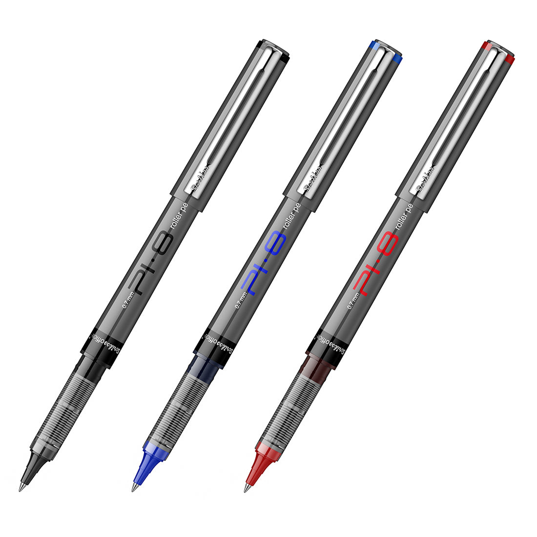 Scrikss PI-8 Roller Pen 0.7mm - Fast Drying Ink, Chrome Plated Tip, Ink Level Indicator - Set of 3 (Black, Blue & Red)