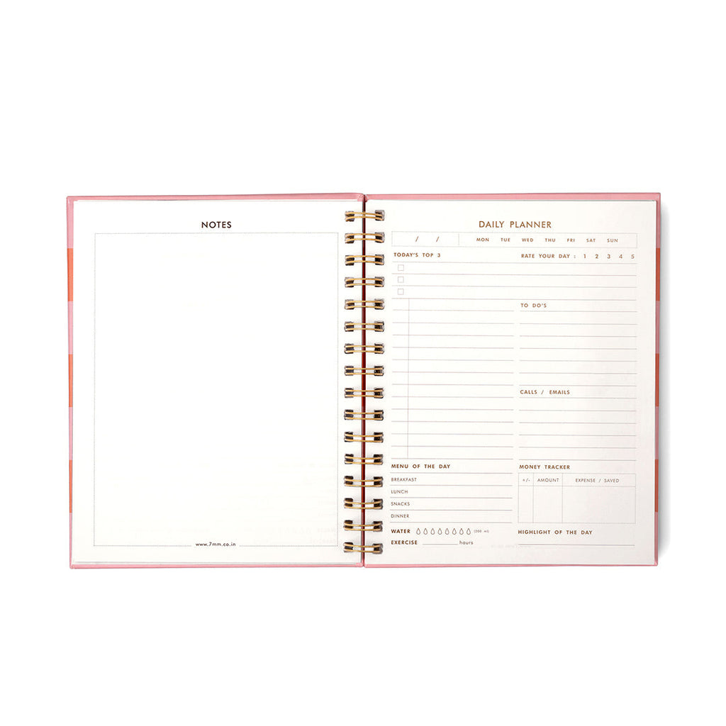 And the best part? It's open-dated, so date it as per your convenience, no need to follow it through strict scheduling! You can get it personalized with gold embossing on the cover adding the perfect finishing touch. Making organization & planning more aesthetic than ever. Our daily planner comes in 5 cover variants with metallic gold foil accents. This planner consists of 150 pages bound together by beautiful gold wiro, enhancing the look and feel of the planner.
