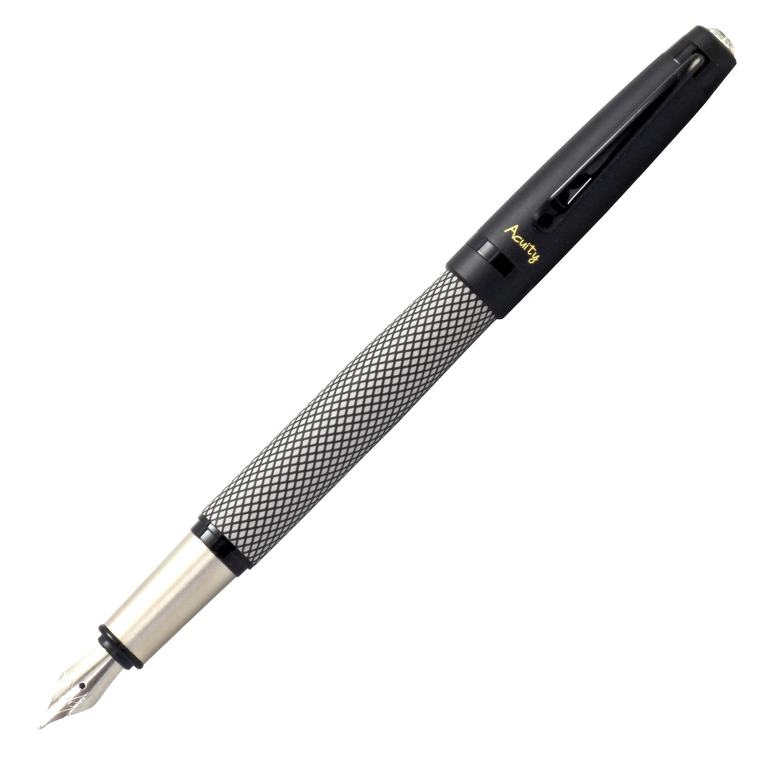 Acuity Fine Nib Fountain Pen with Converter - Metal Body with Matte Black Finish - Classy Checks Design & Black Clip - Comes in a Pen Pouch - 10017