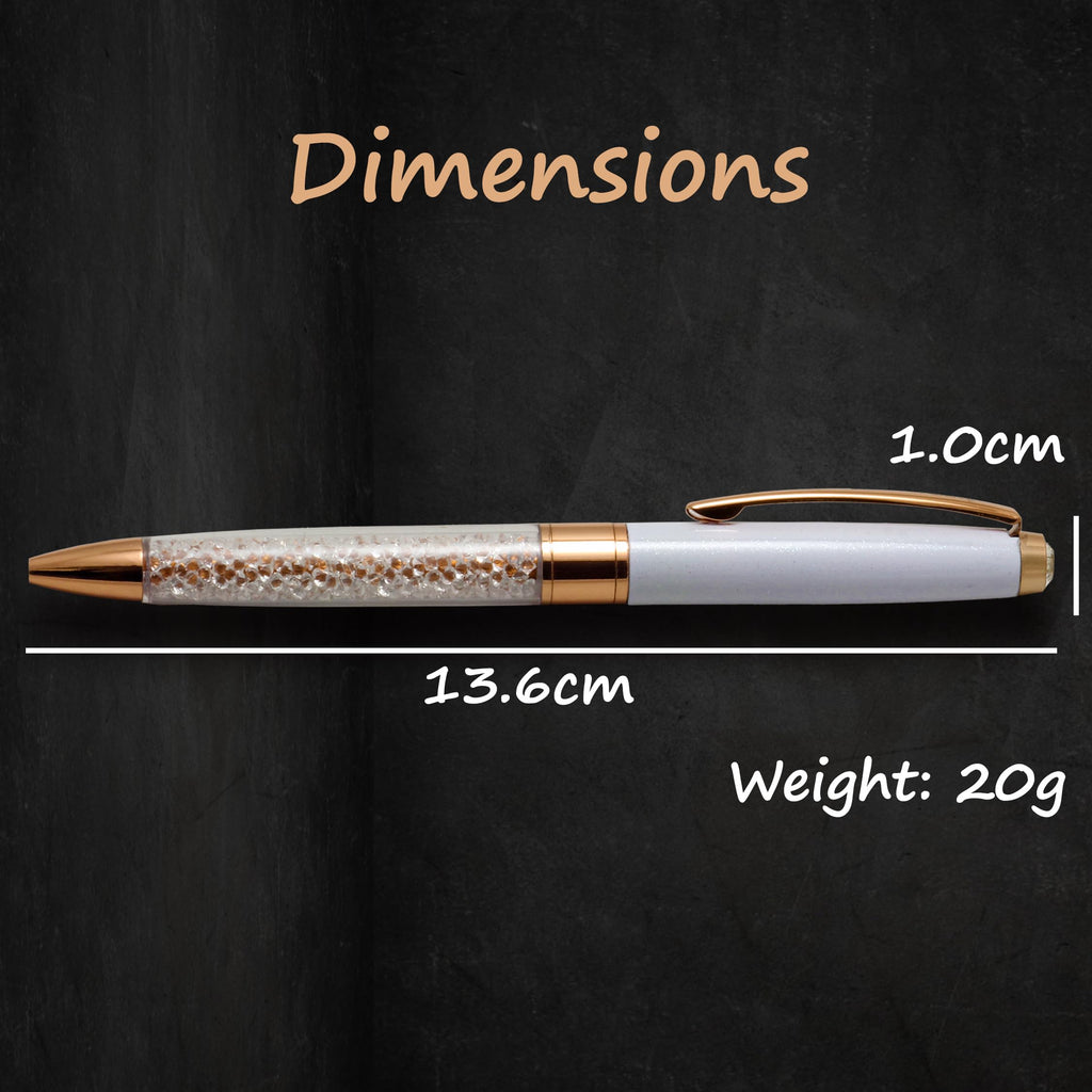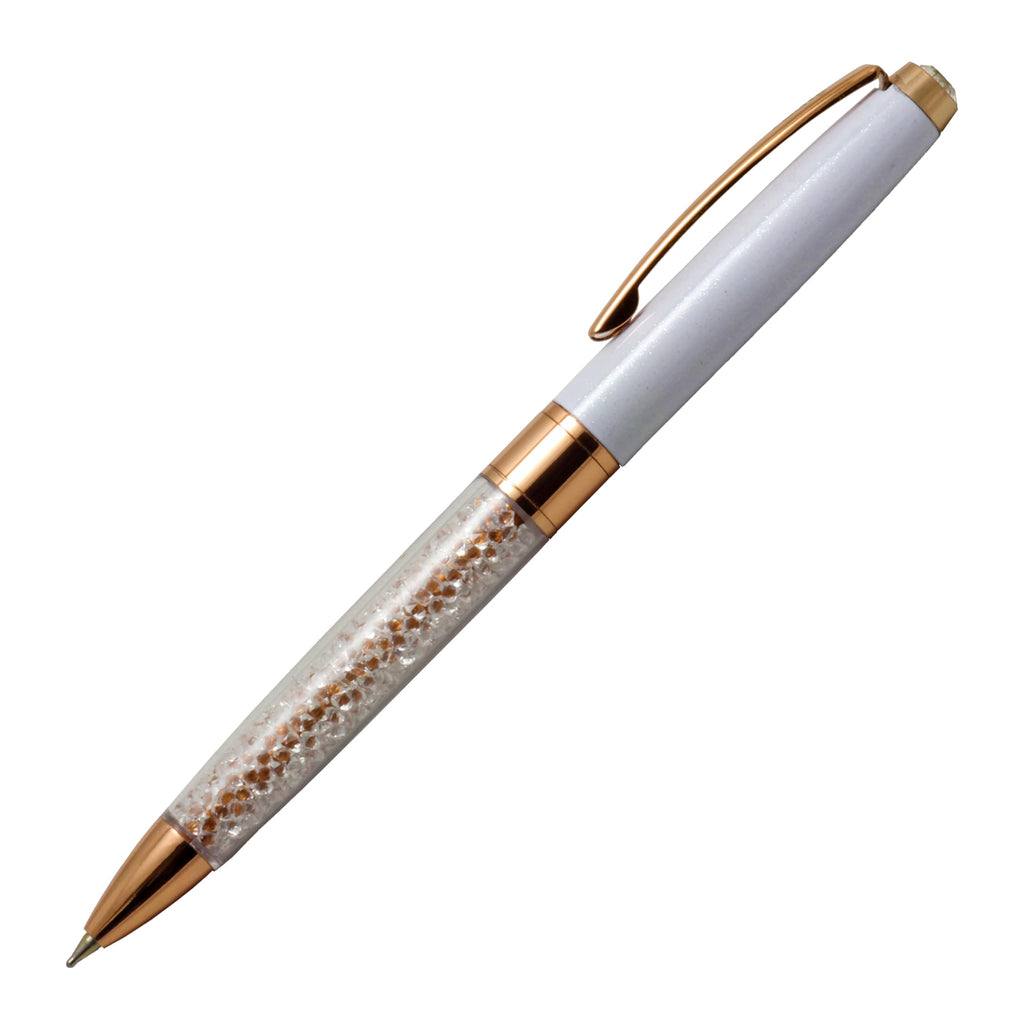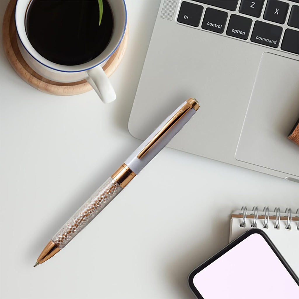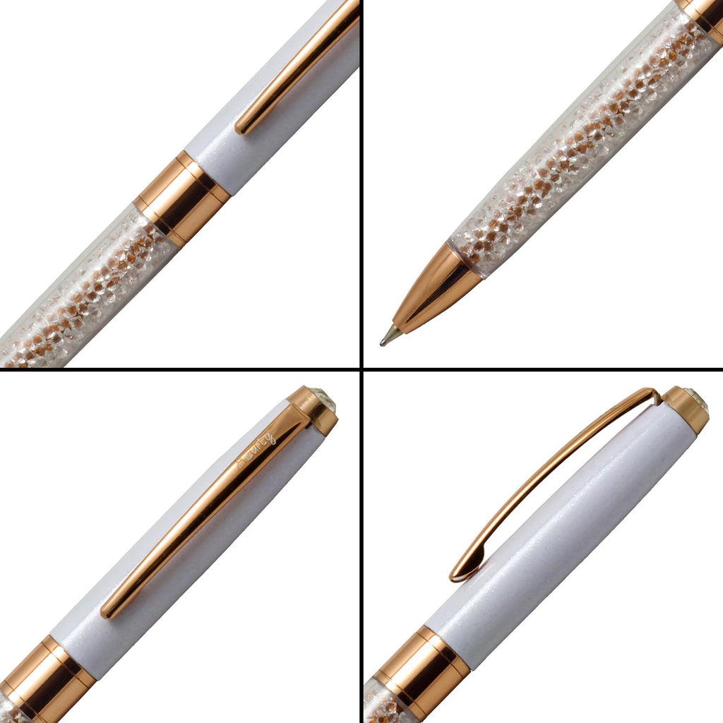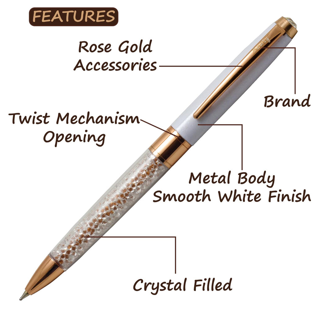 Home Acuity Pens Acuity Ball Point Pen - Metal Body with Glossy White Finish, Crystal Filled and Rose Gold Accessories - It Comes in a Pouch - 30013