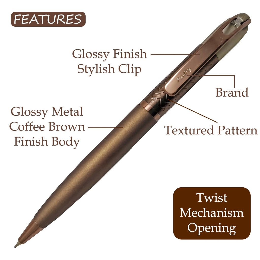 Acuity Coffee-Scented Blue Ink Ball Point Pen | Dark Brown Finish Metal Body with Glossy Clip | Coffee Fragrance Smell Ink | Perfect for Personal Use & Gift Idea | It Comes in a Pouch | 30045