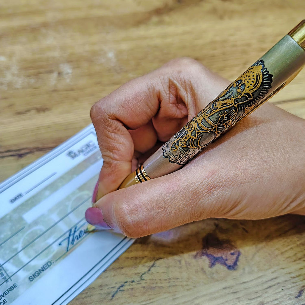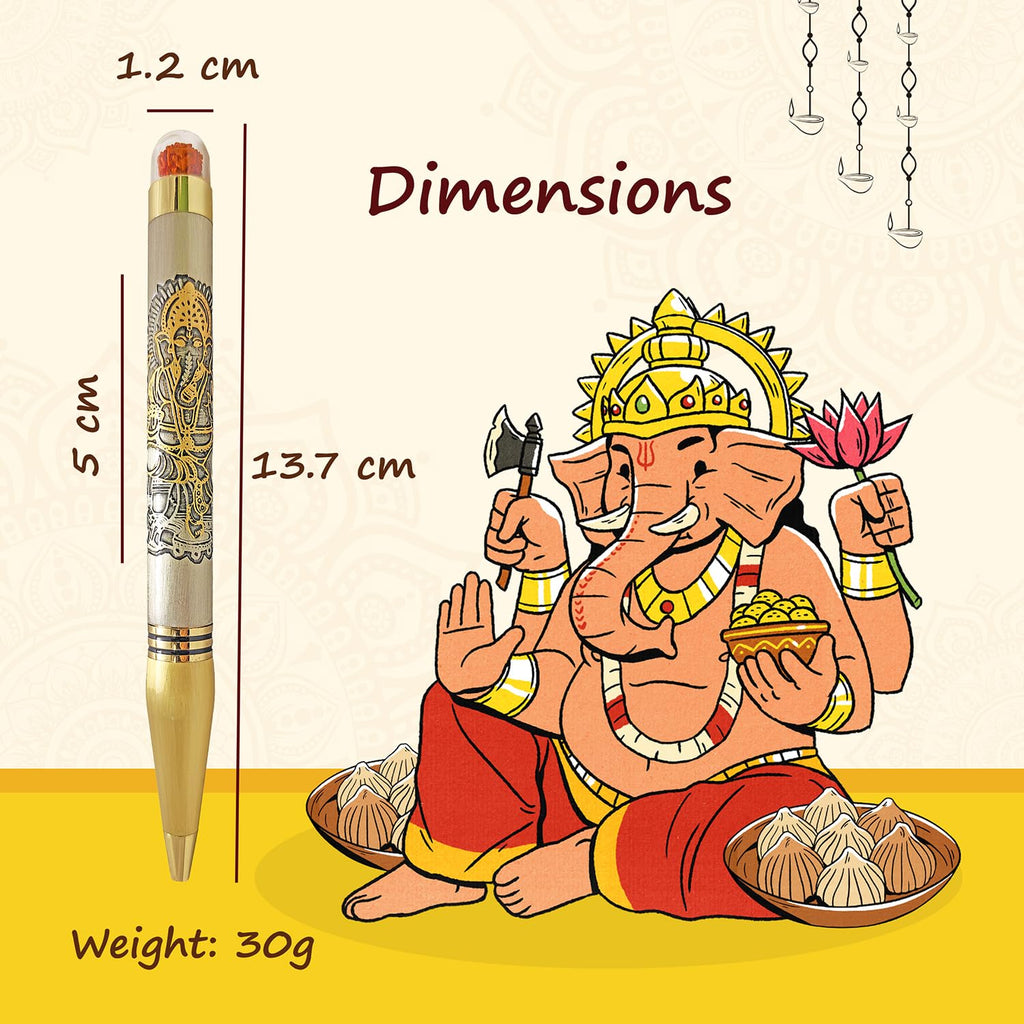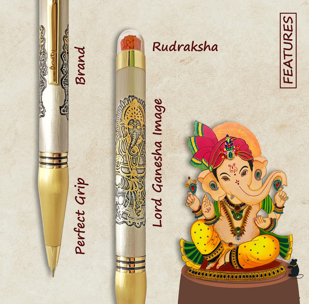 - Ball Point Pen Features Ganesh engraving and Rudraksha bead, symbolising blessings, luck, and positivity