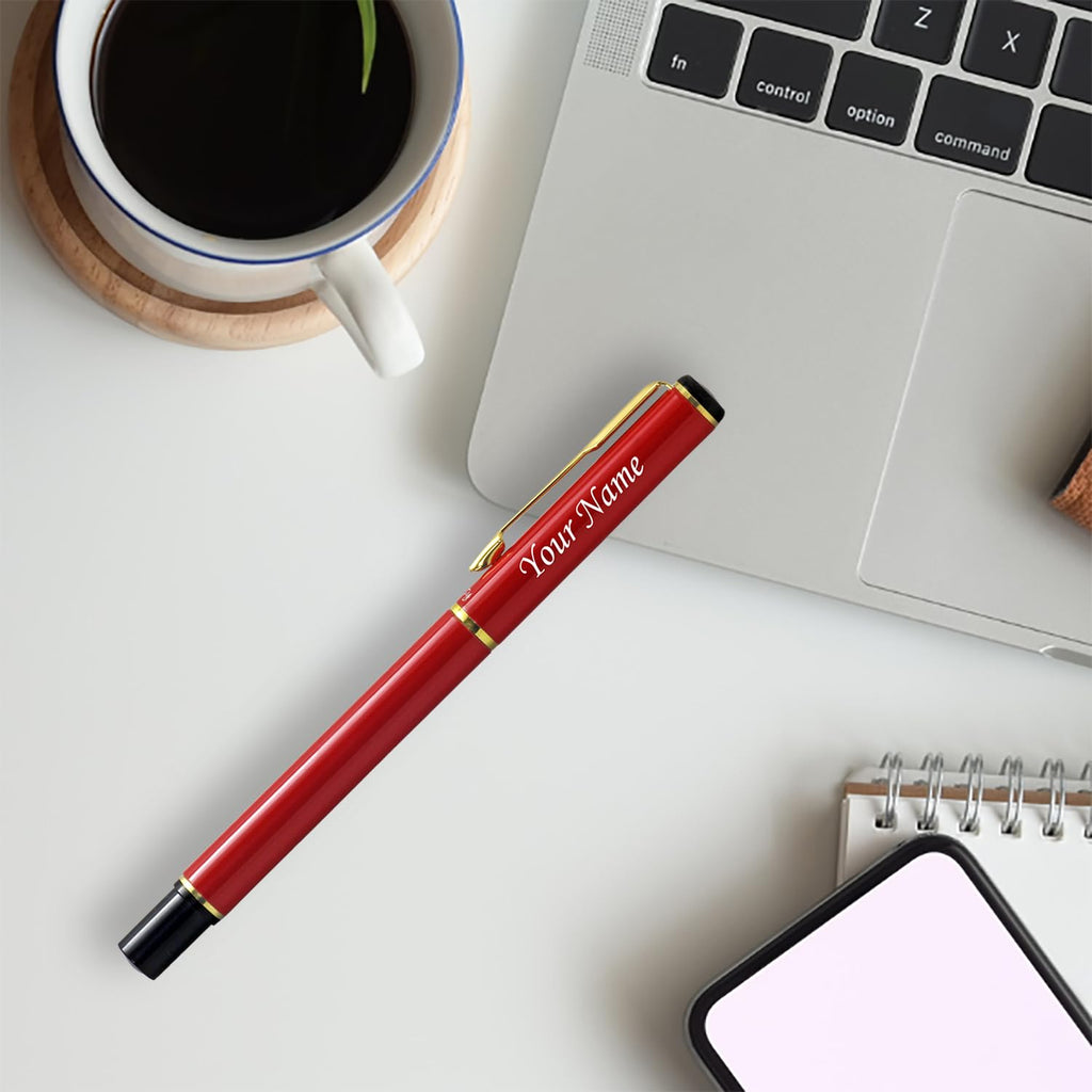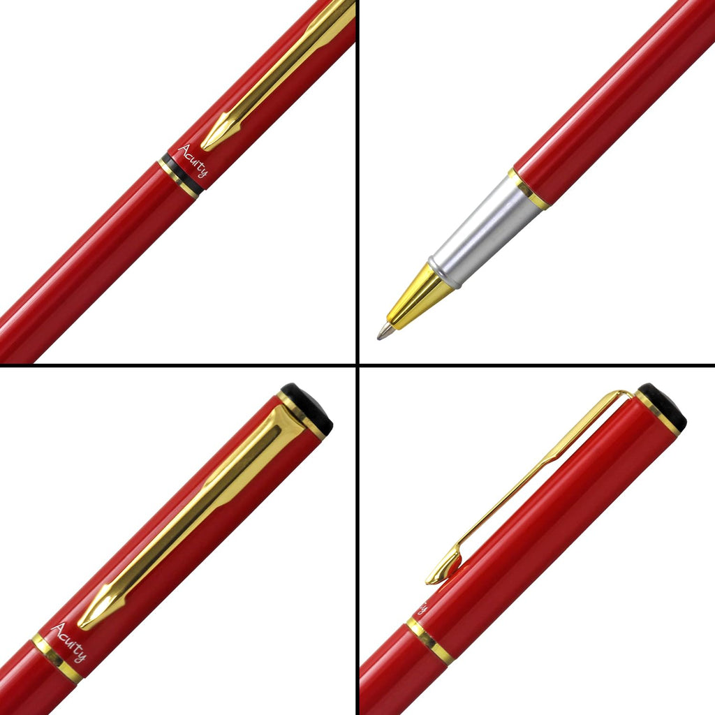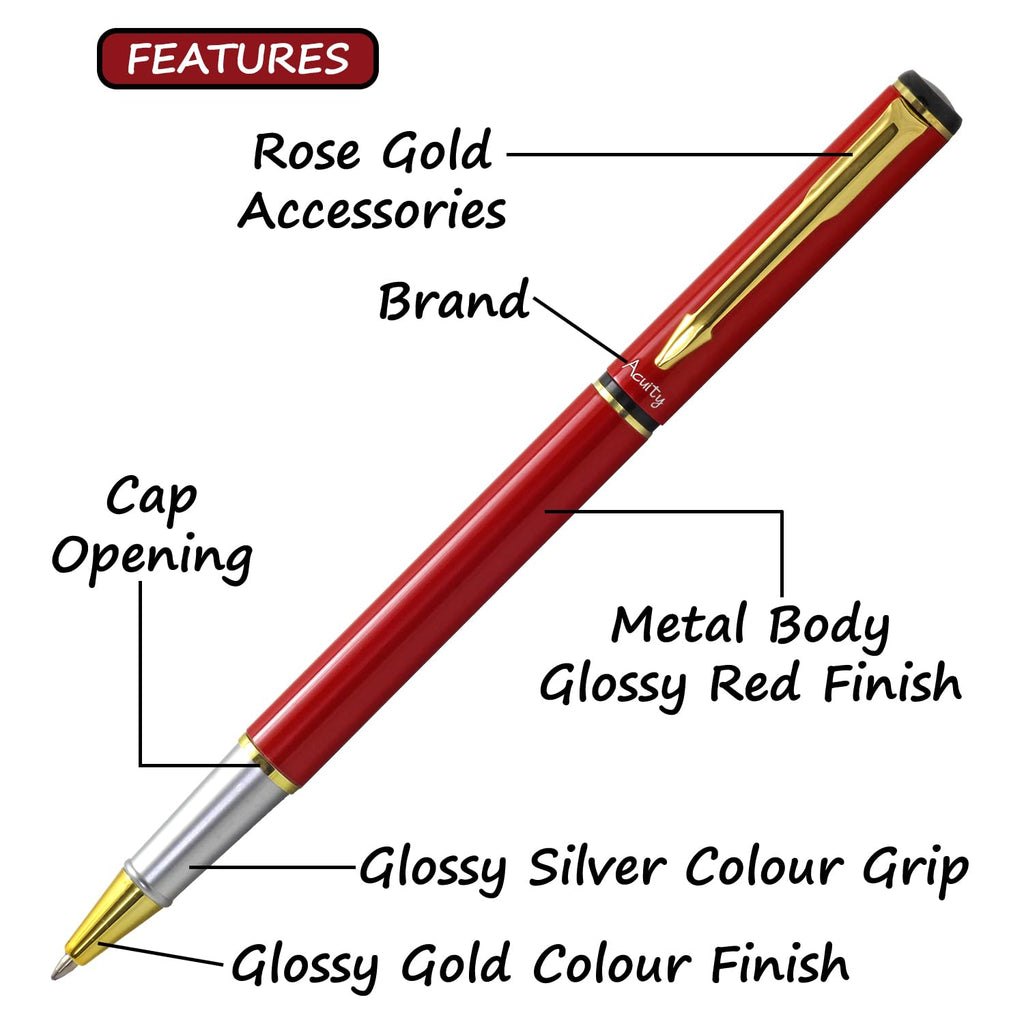 Acuity Roller Gel Pen - Glossy Red Metal Body with Gold Accessories - It Comes in a Pouch - 30020