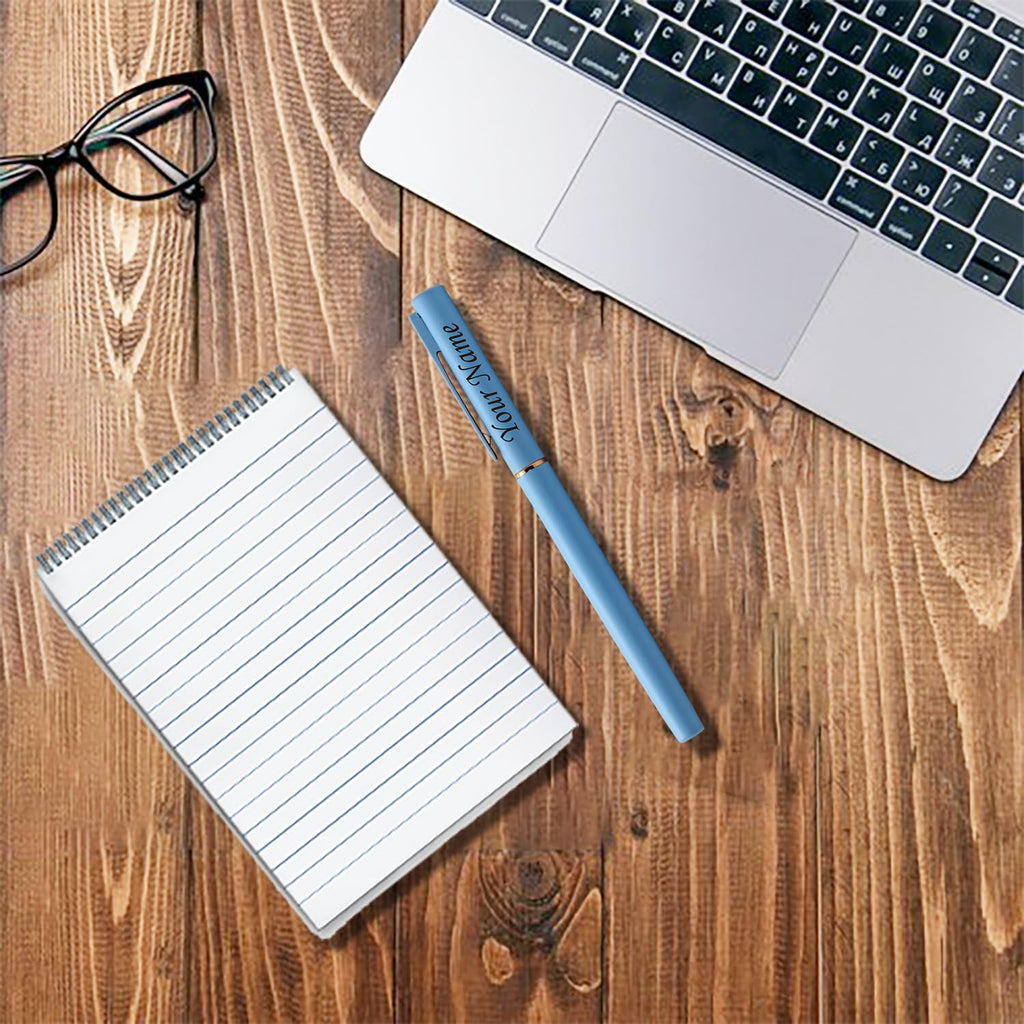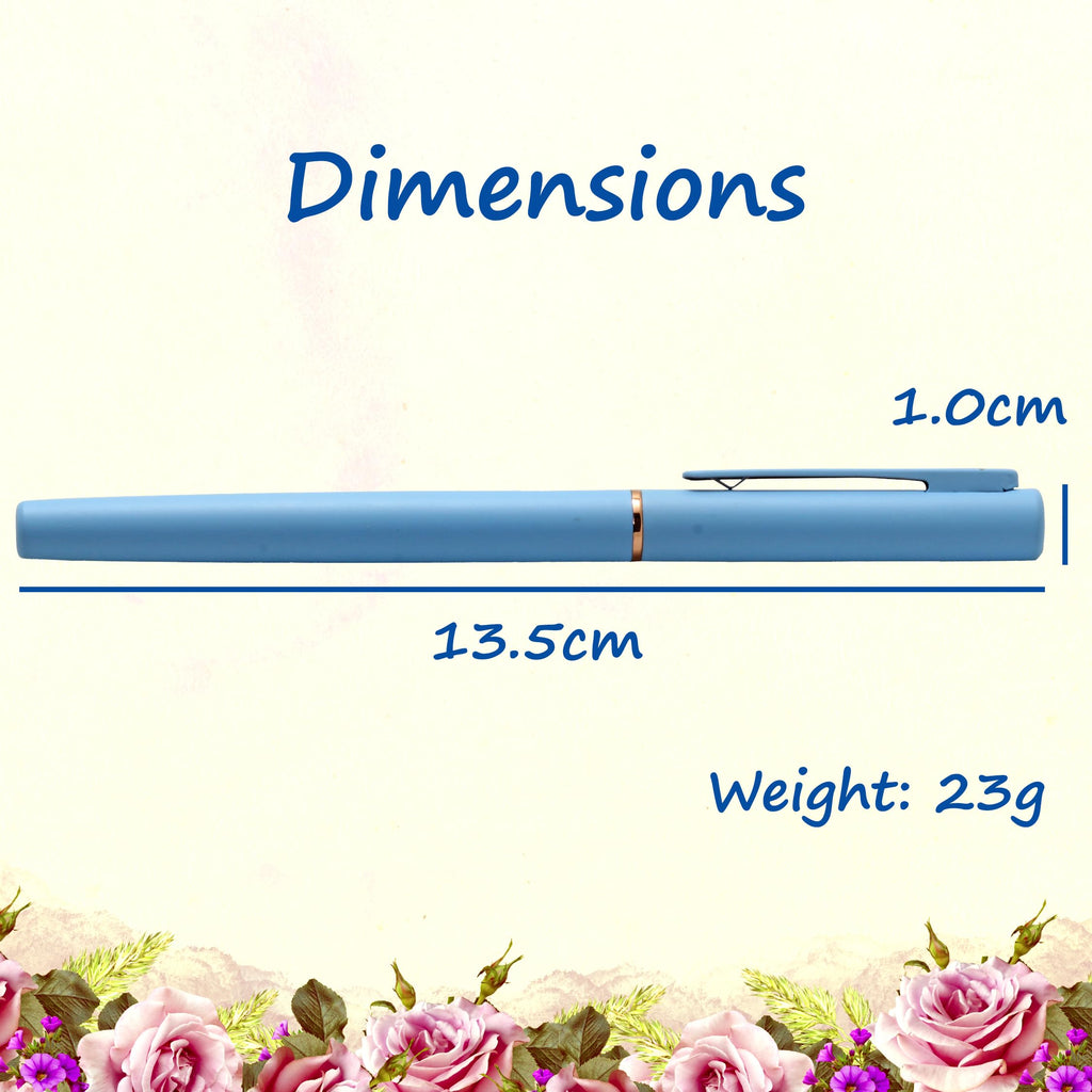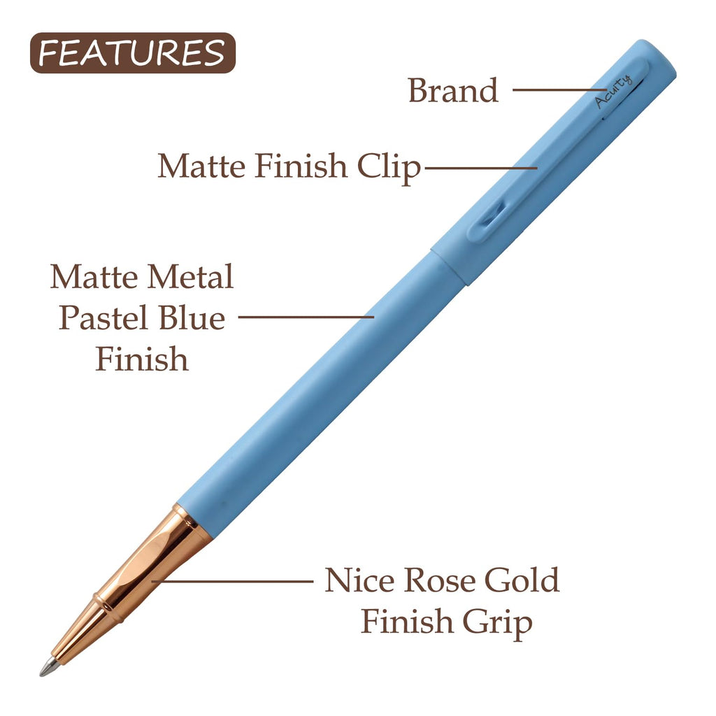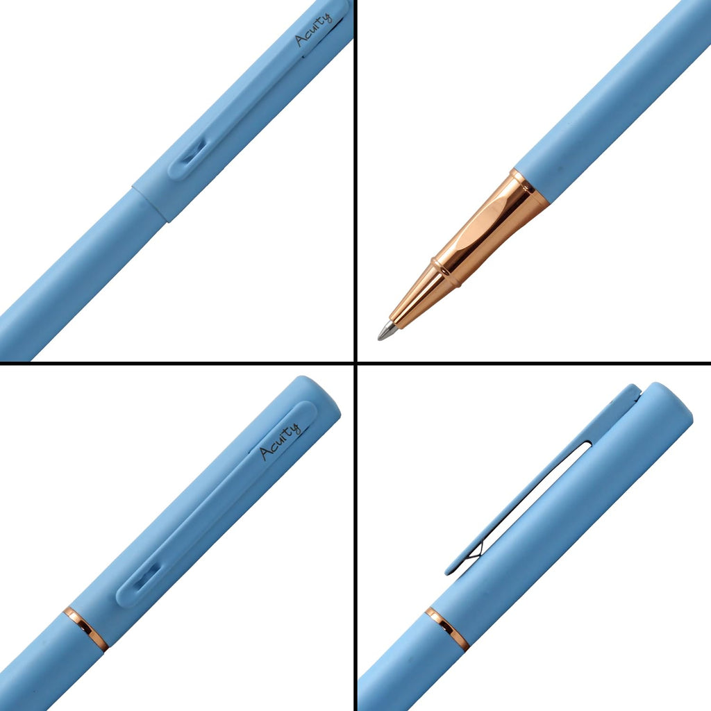 Acuity Roller Gel Pen - Matte Finish Blue Metal Body with Rose Gold Grip - It Comes in a Pouch - 50029