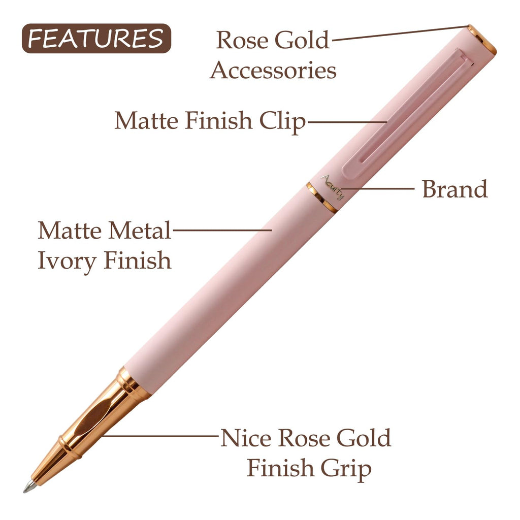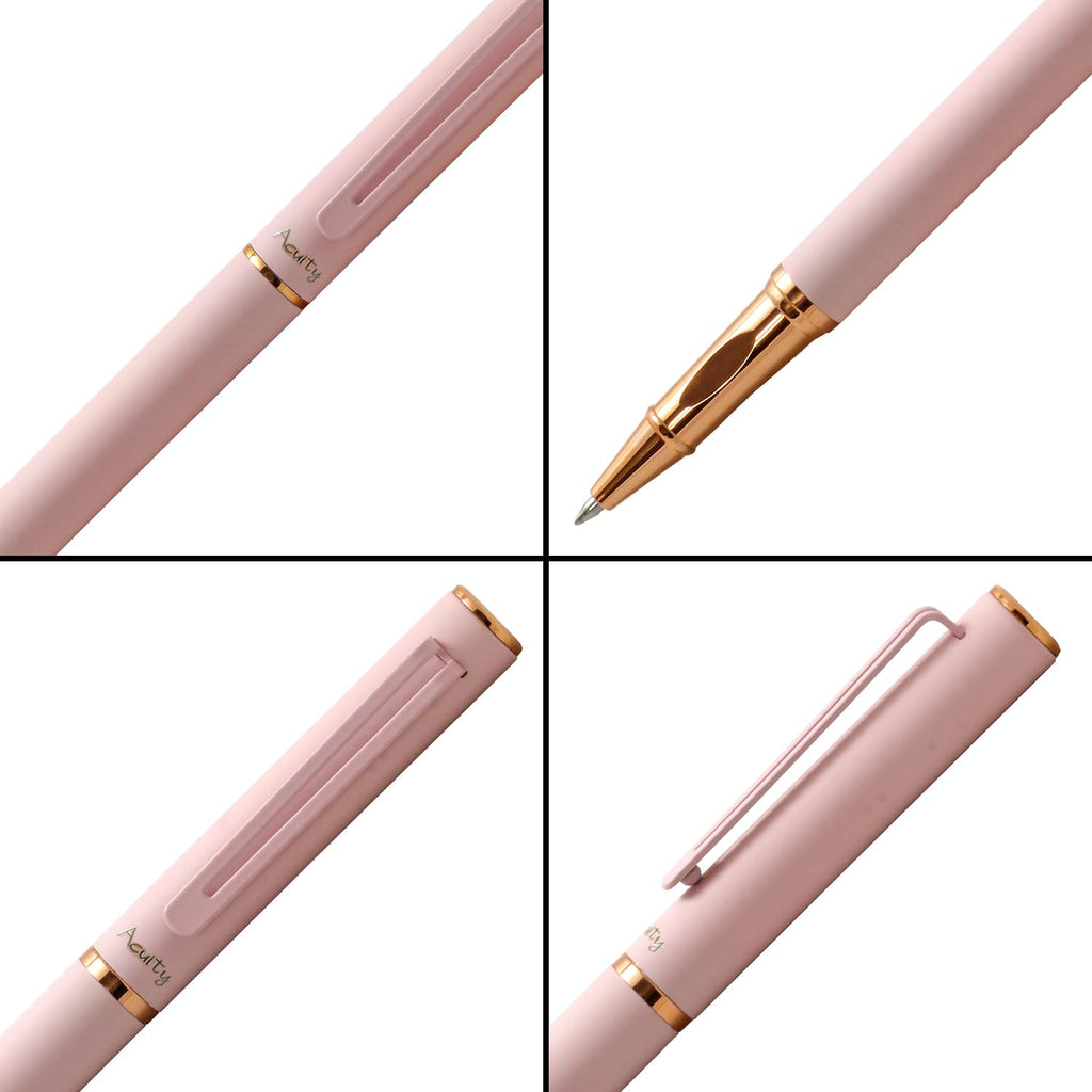 Acuity Roller Gel Pen - Matte Finish Pastel Pink Metal Body with Rose Gold Accessories - It Comes in a Pouch - 50025