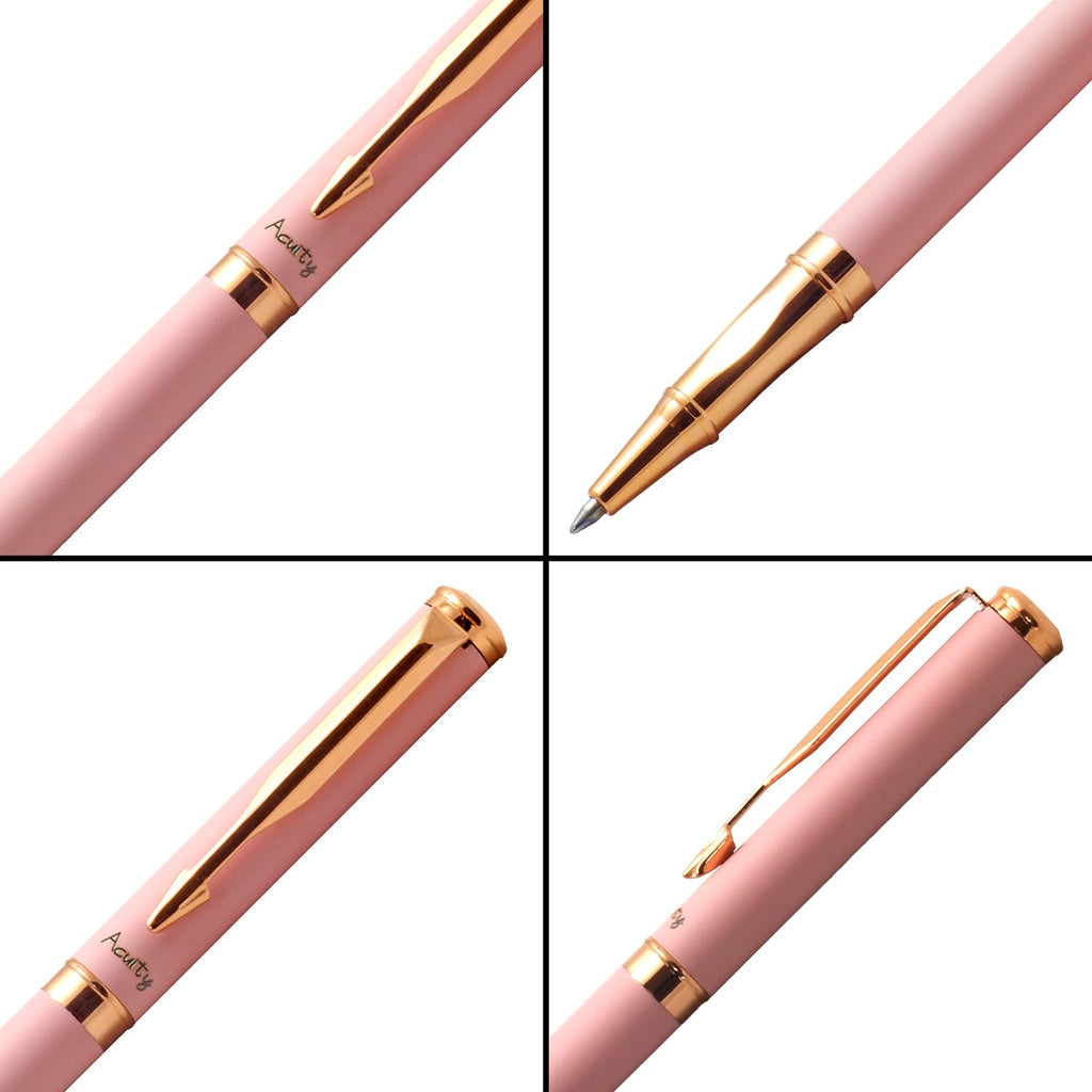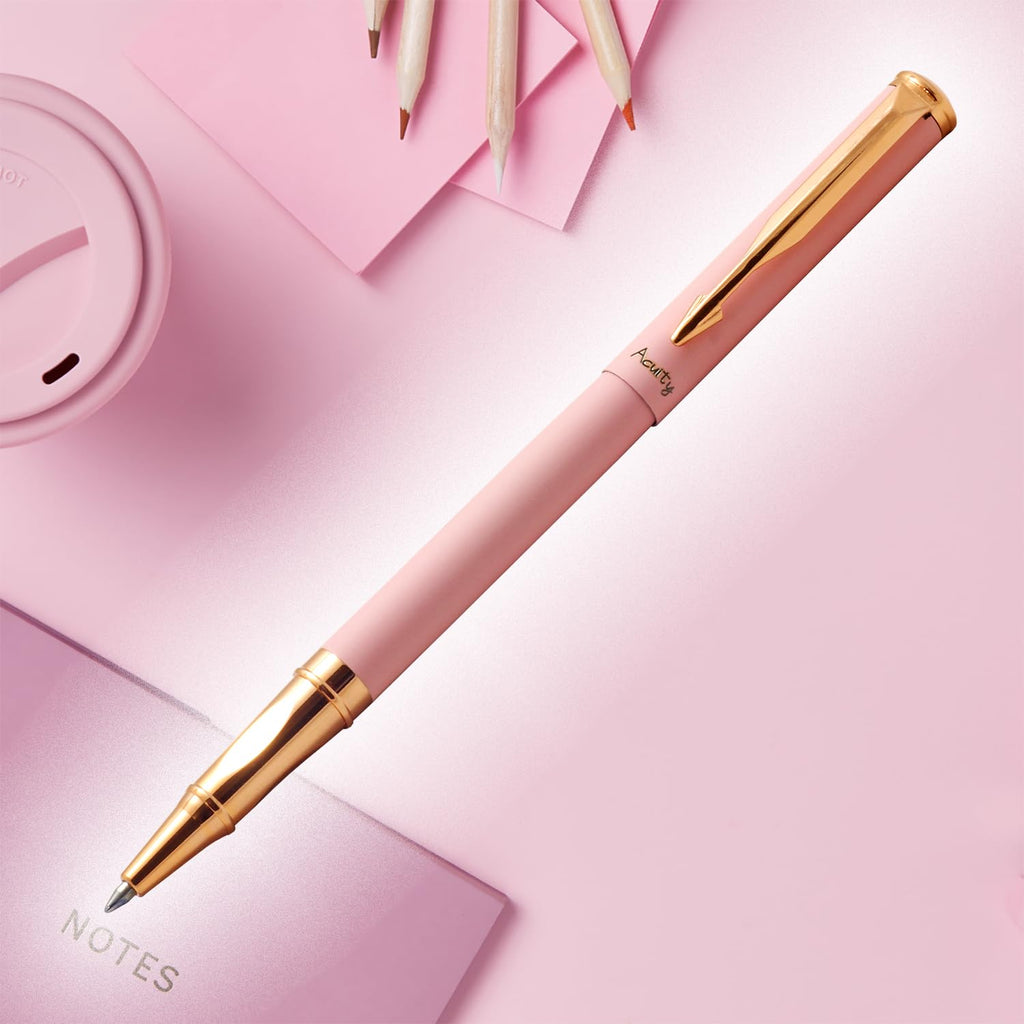Acuity Roller Gell Pen - Metal Body with Matte Pastel Pink Finish and Glossy Rose Gold Accessories - It Comes in a Pouch - 50018 Pink
