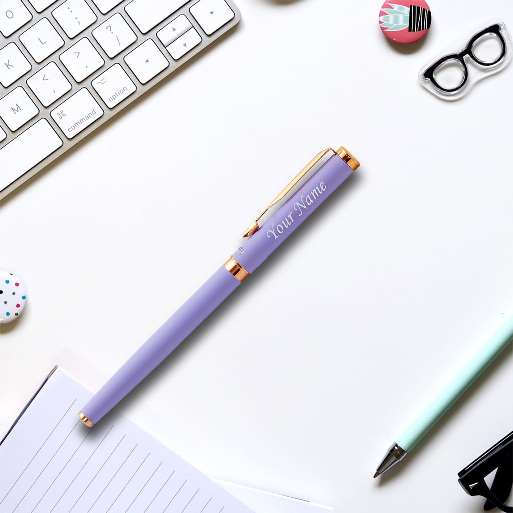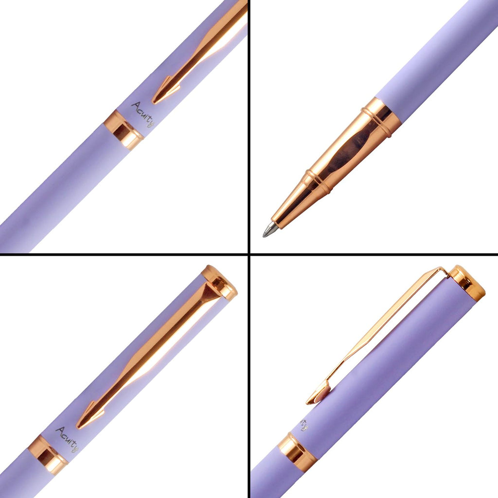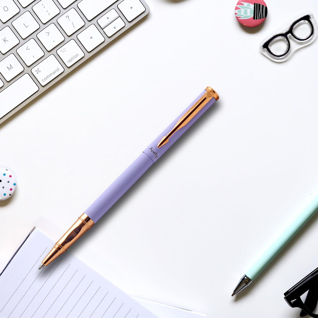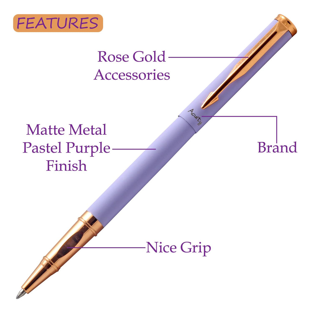 Acuity Roller Gell Pen - Metal Body with Matte Pastel Purple Finish and Glossy Rose Gold Accessories - It Comes in a Pouch - 50018 Purple