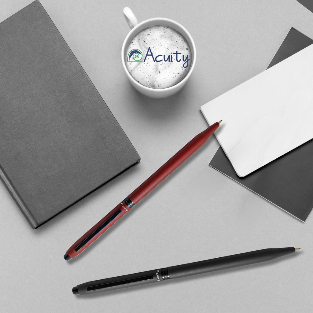 Acuity Slim Ball Point Pen Set - Metal Body with Matte Finish, and Glossy Black Clip – Ink Colour Blue - It Comes in a Pouch - (Set of 2 Pens – Maroon & Black) - 10029