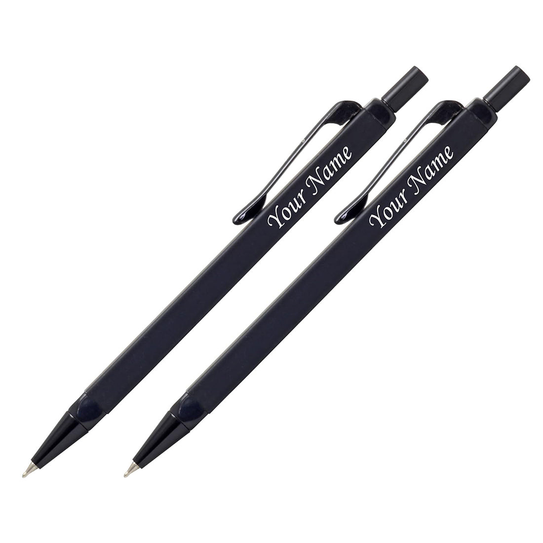 Set of 2 Ball Point Pens Matte Black Square Shape Metal Body Click Mechanism -...