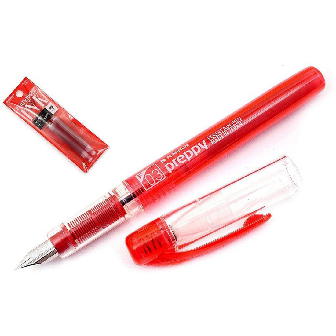 Platinum Preppy Fine 03 Nib Red Fountain Pen With Cartridge - Easy to Use, Stainless Steel Nib, Slip Seal Cap Mechanism, Smooth Writing