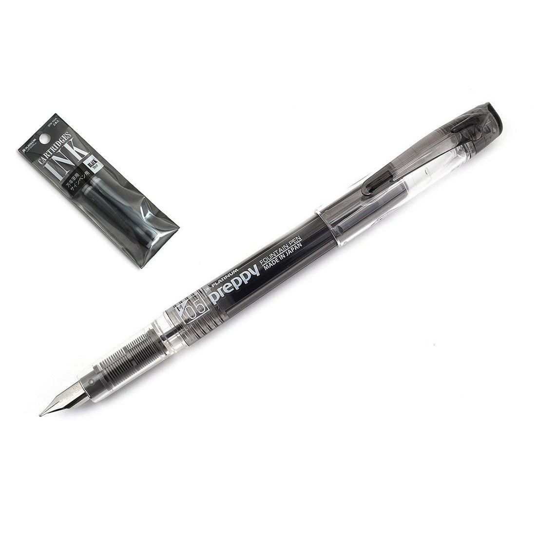 Platinum Preppy Medium 05 Nib Black Fountain Pen With Cartridge - Easy to Use, Stainless Steel Nib, Slip Seal Cap Mechanism, Smooth Writing