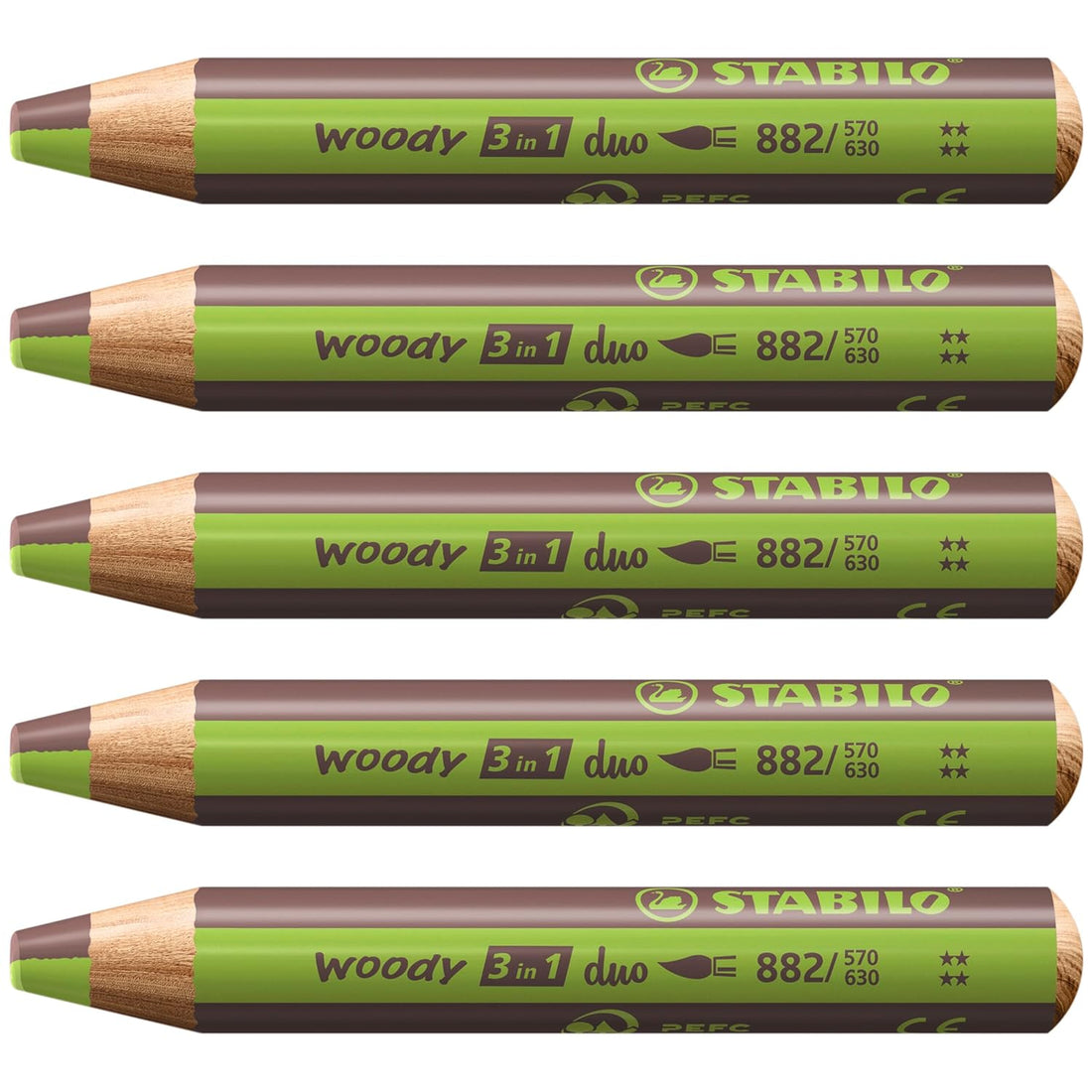 Stabilo | Multi-Talented Pencil | Woody 3 In 1 Duo | Light Green/Brown | Pack of 5