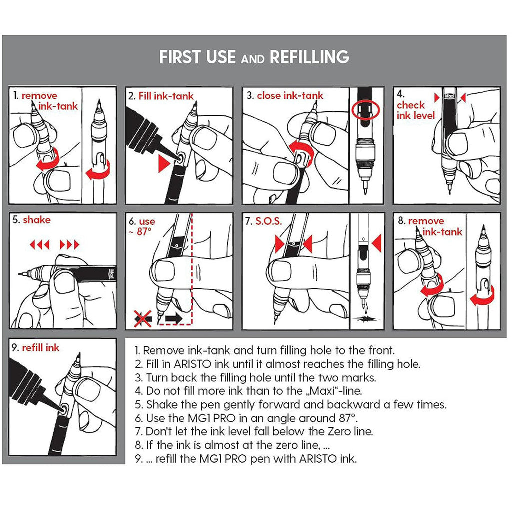 mg1 Drawing Ink / 23ml The ARISTO Indian ink convinces by high opacity, very good light-resistance and adhesion. The ink is easy-flowing and insusceptible to finger prints on the drawing surface. It is waterproof, resistant to lead-eraser, reproducible und fast drying.