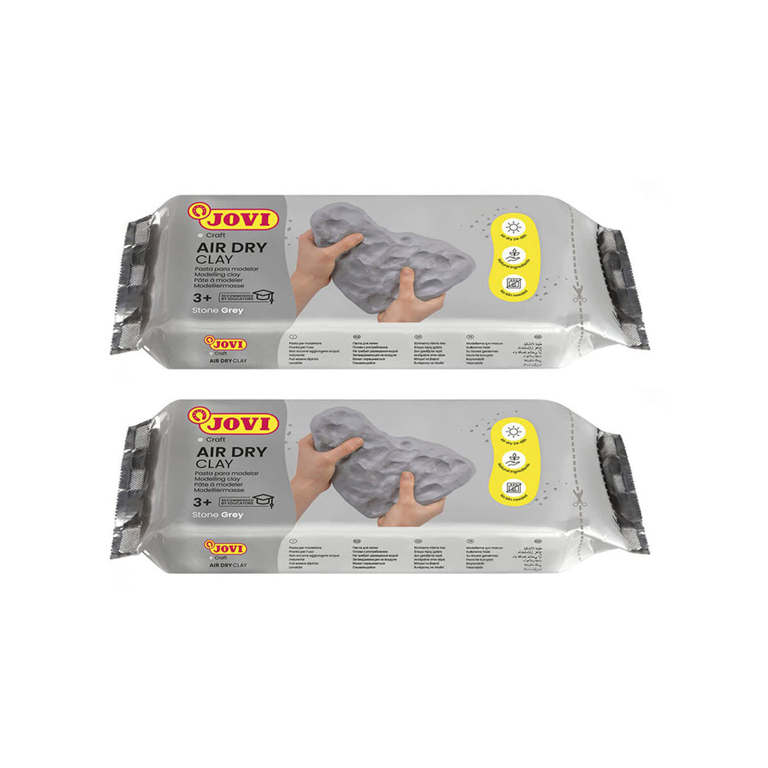 Jovi European Air-Dry Modeling Stone Grey Clay 2 Packets - Each Pack of 250 Grams for Sculpting Pottery Art & Craft Handicraft Educational Purpose Fine Motor Skills