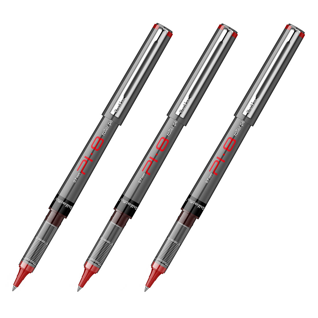 Scrikss PI-8 Roller Pen 0.7mm - Fast Drying Ink, Chrome Plated Tip, Ink Level Indicator - Set of 3 (Red)