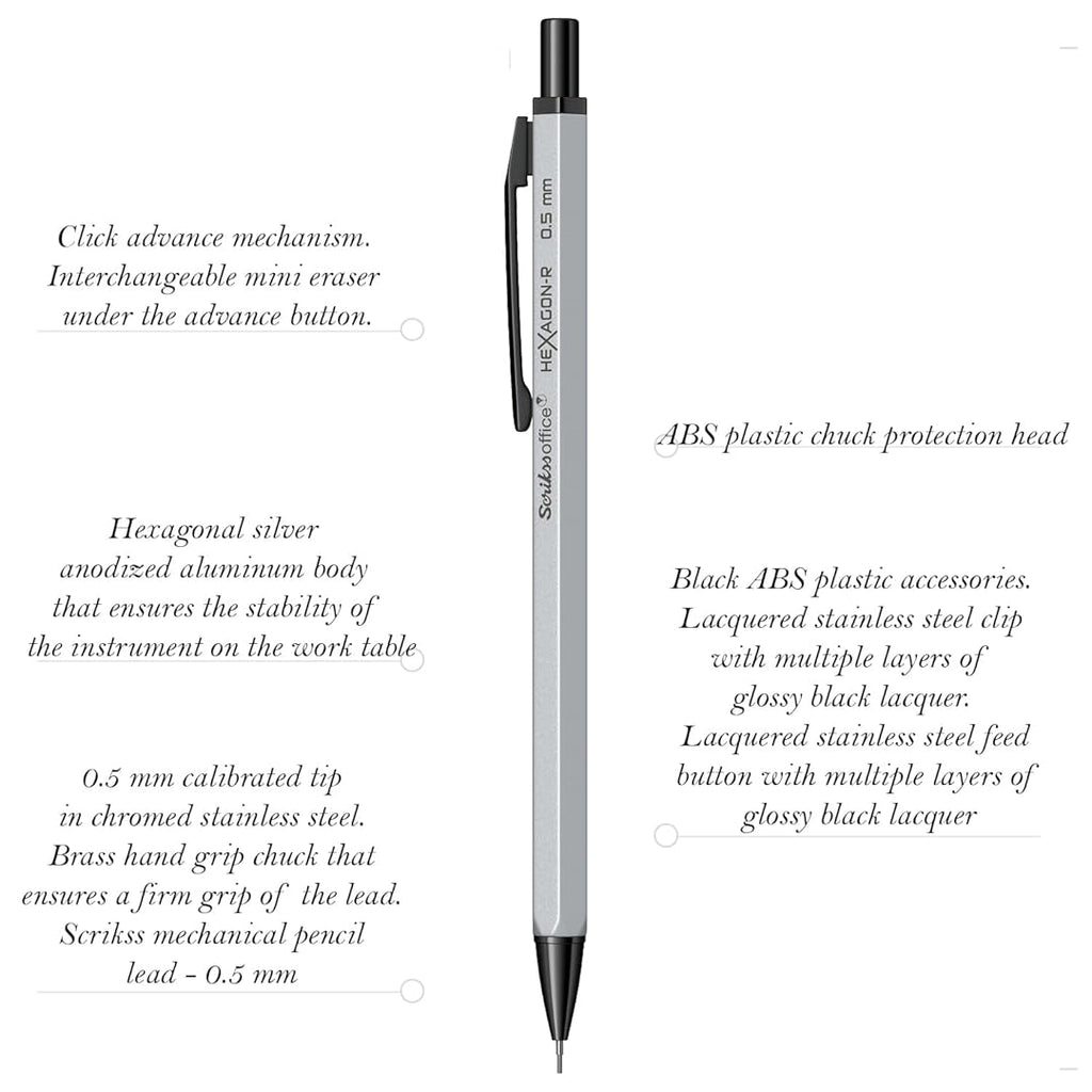 Scrikss | Hexagon-R | Mechanical Pencil | 0.5mm | Silver