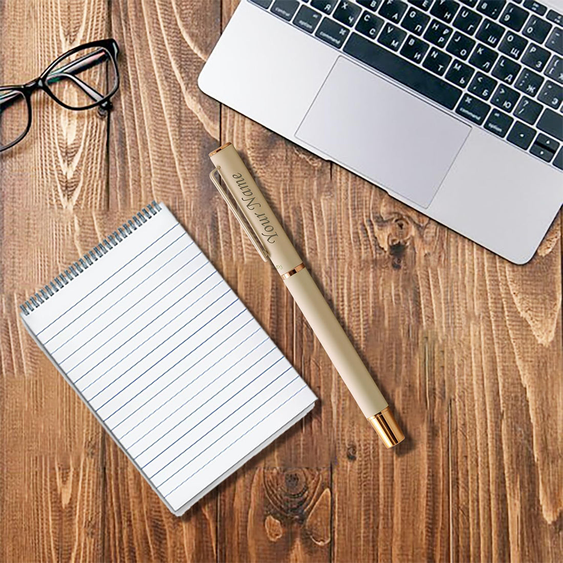 Acuity Roller Gel Pen - Matte Finish Ivory Colour Metal Body with Rose Gold Accessories - It Comes in a Pouch - 50025