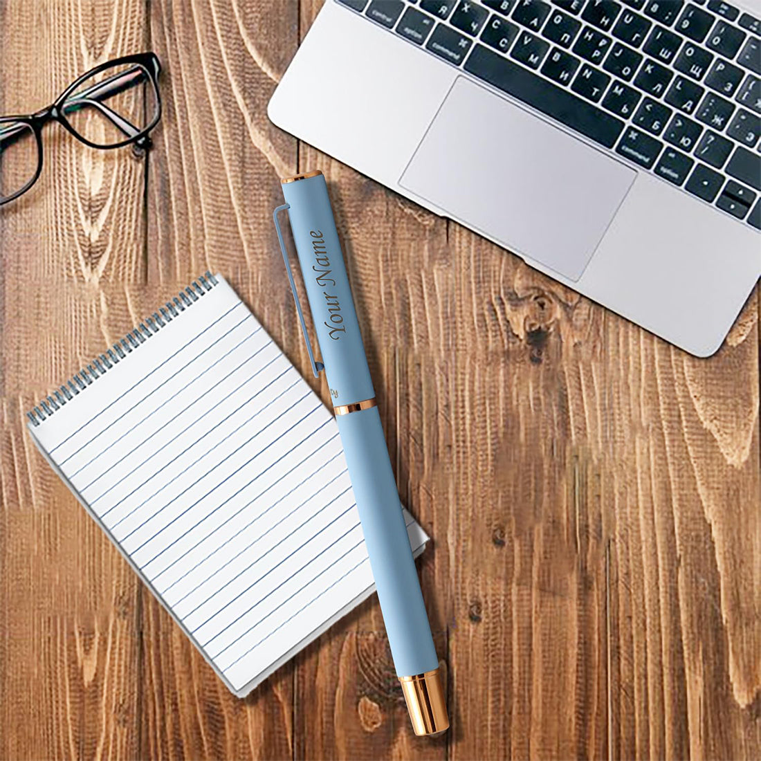 Acuity Roller Gel Pen - Matte Finish Pastel Blue Metal Body with Rose Gold Accessories - It Comes in a Pouch - 50025
