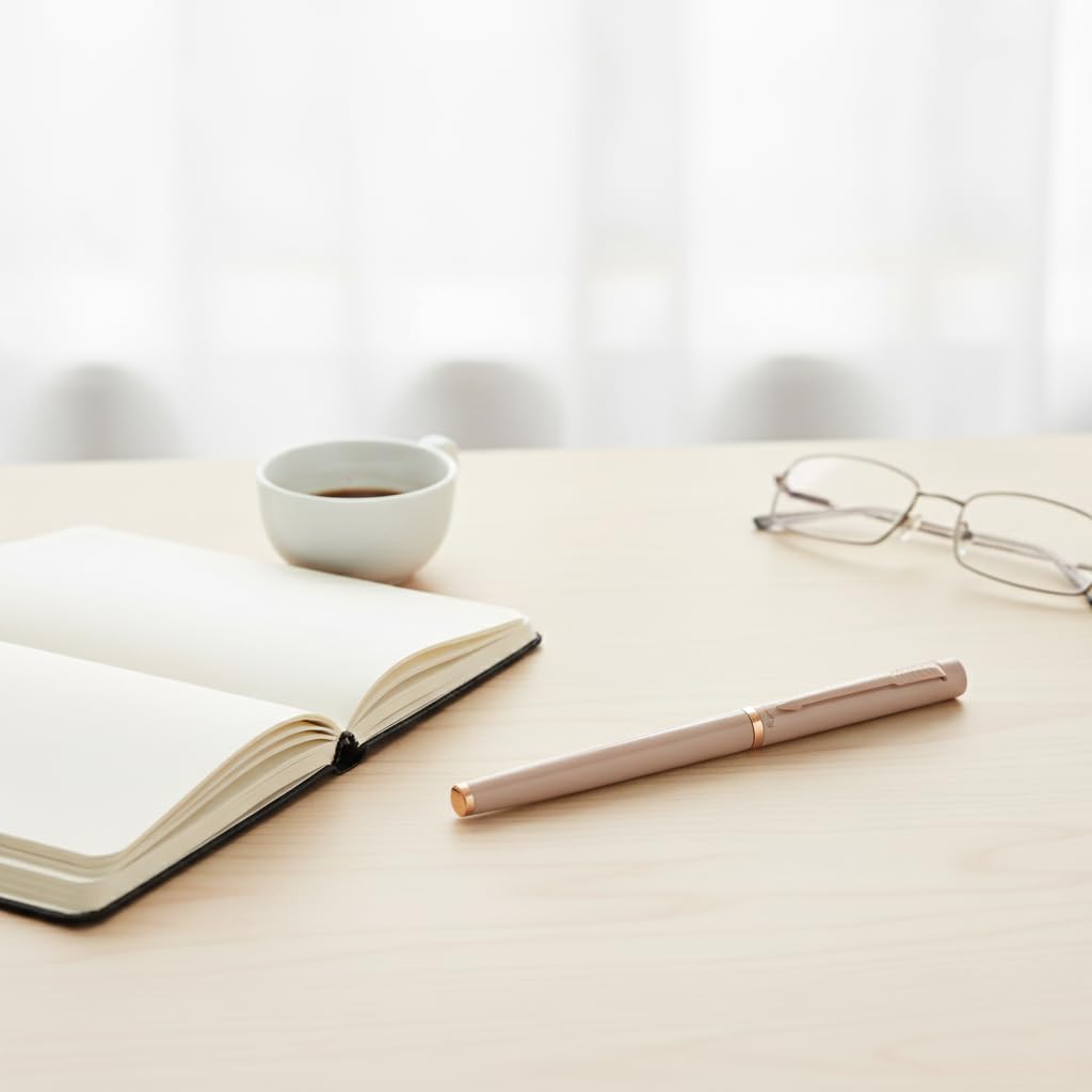 Acuity Roller Gel Pen - Metal Body with Glossy Finish and Rose Gold Accessories - It Comes in a Pouch - 50036