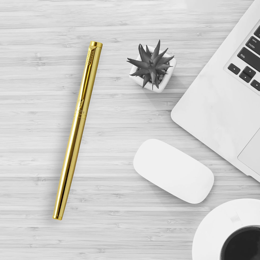 Acuity Roller Gel Pen - Metal Body with Glossy Gold Finish - Comes with a Pen Pouch - Ink Colour Blue - 40003