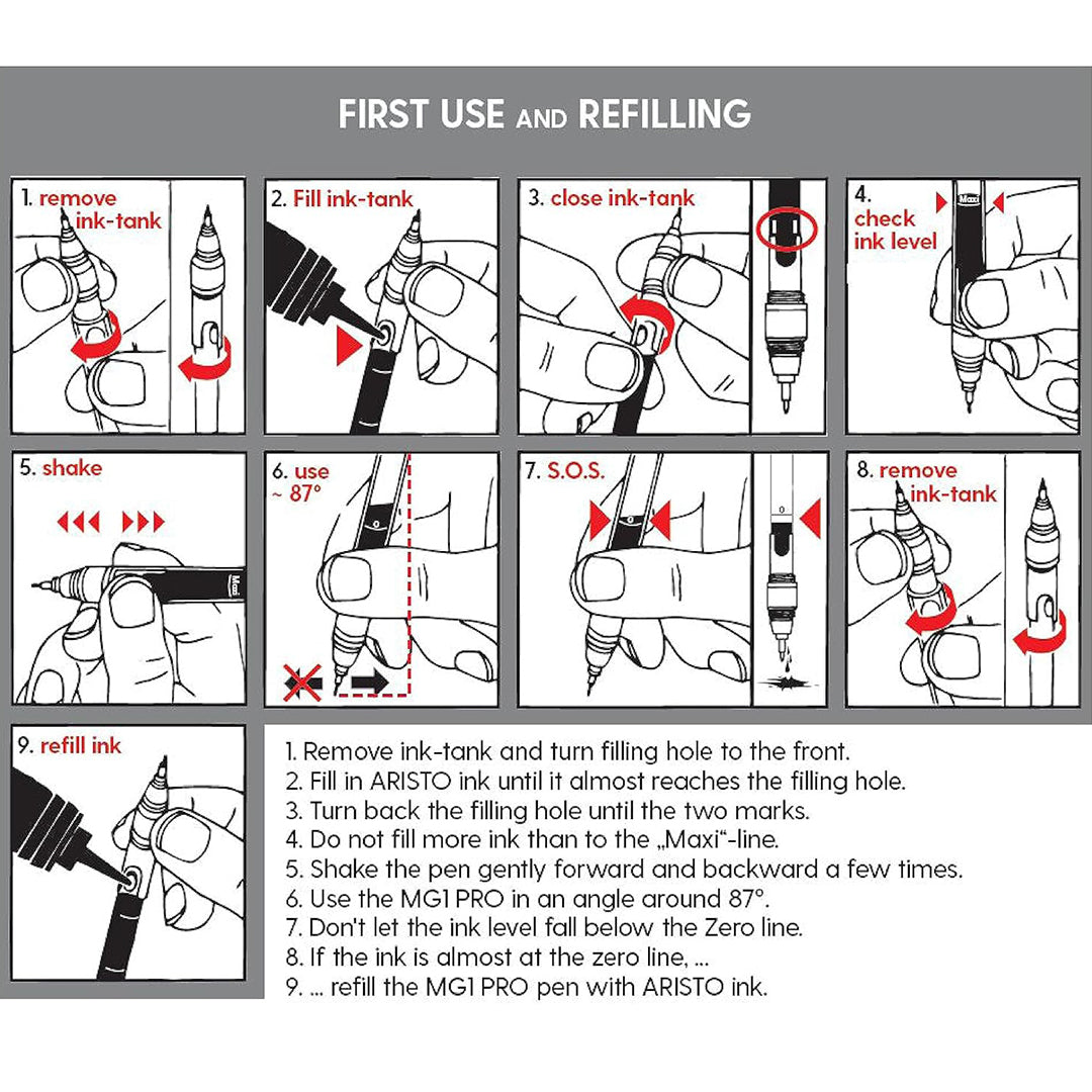 mg1 Drawing Ink / 23ml The ARISTO Indian ink convinces by high opacity, very good light-resistance and adhesion. The ink is easy-flowing and insusceptible to finger prints on the drawing surface. It is waterproof, resistant to lead-eraser, reproducible und fast drying.