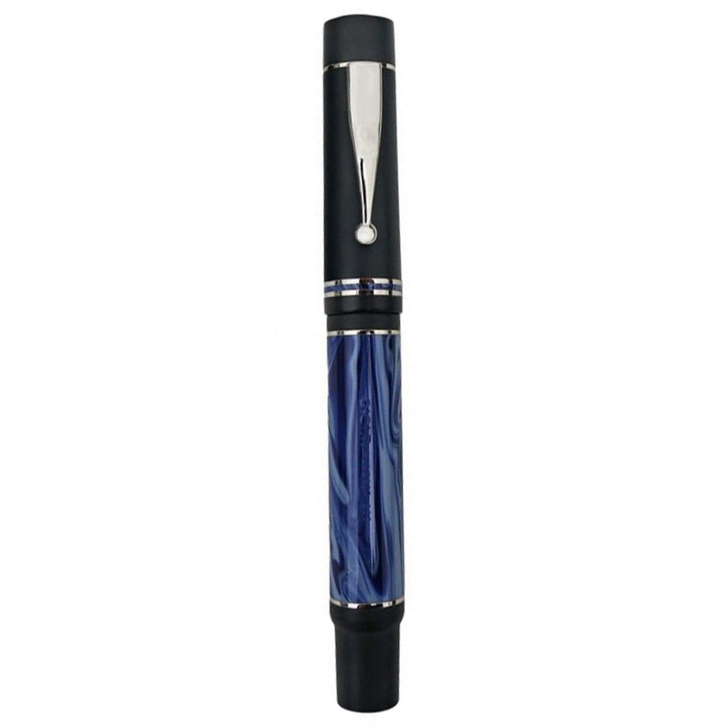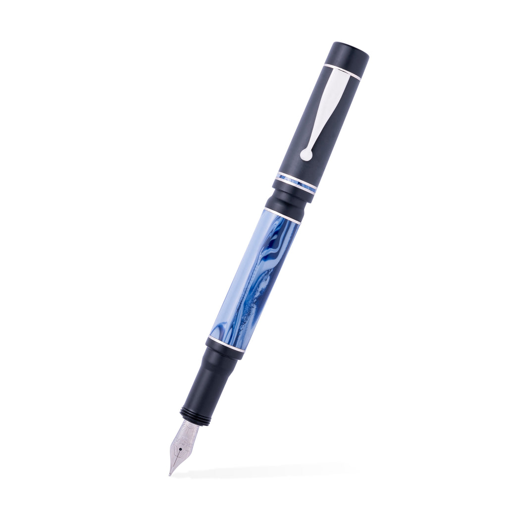 Gioia Pen is a young Italian brand where great master craftsmen with twenty years of experience produce fountain pens with the geniality and fantasy of Made in Italy. The production is made with rigorous quality controls and a hand turned resin from solid bars that are proudly made in Italy. Gioia Alleria Mare is a piston filler fountain pen with great dimensions. The black resin cap features an original-shape clip and two decorative rings. The blue body is inspired by the slow and continuous breaking of the waves that animate the sea of ??southern Italy.