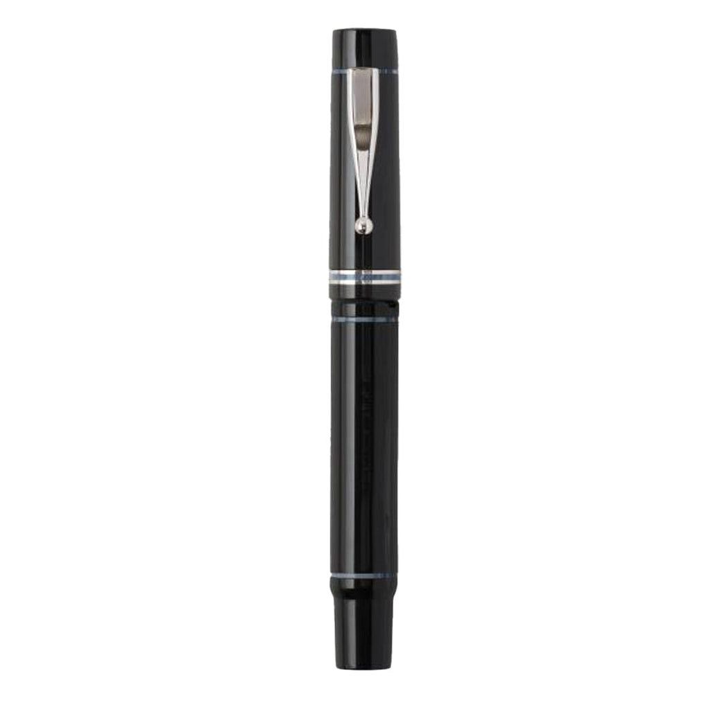 Gioia Pen is a young Italian brand where great master craftsmen with twenty years of experience produce fountain pens with the geniality and fantasy of Made in Italy. The production is made with rigorous quality controls and a hand turned resin from solid bars that are proudly made in Italy. Gioia Alleria Nuvola is a piston filler fountain pen with great dimensions. The black resin cap features an original-shape clip and two decorative rings that are interspersed by a blue resin ring. Nuvola, in fact, means cloud and the blue rings on body and cap are like light cut in a cloudy day.