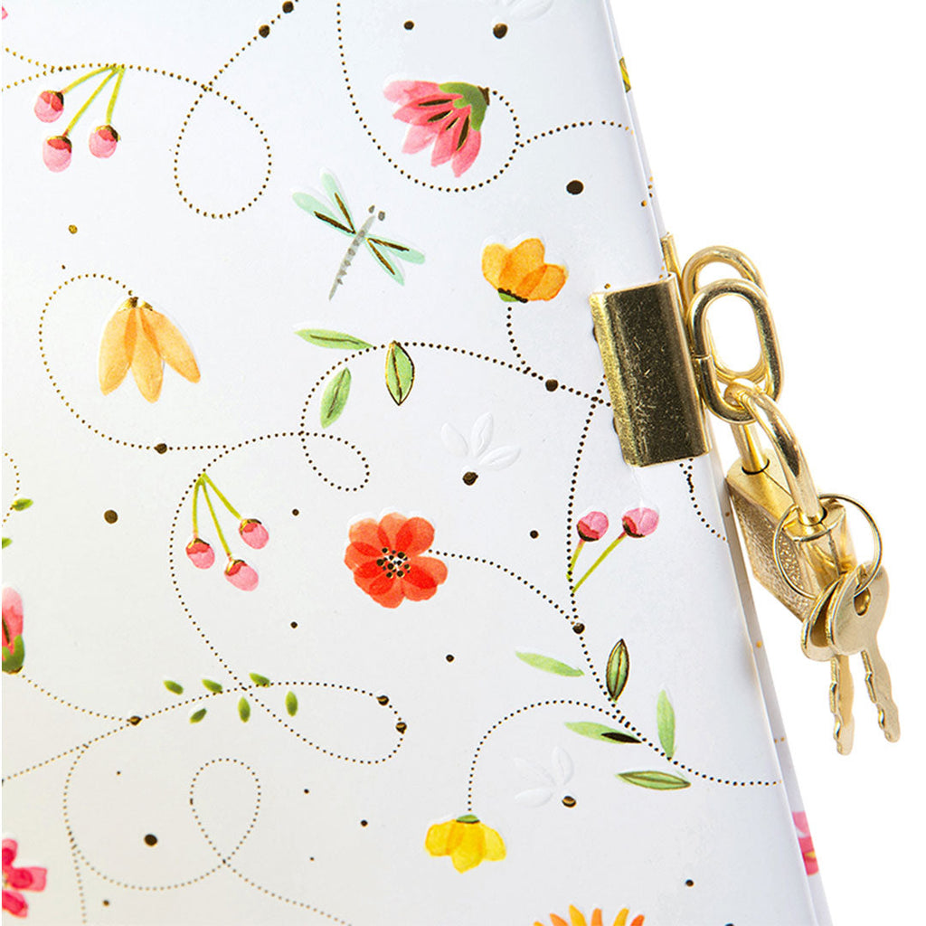 The diary in the practical size of 16.5x16.5 cm not only impresses with its beautiful design, but also with its outstanding quality. Small and big secrets, the first adventures or normal everyday life can be recorded on 96 white pages. The pages inside are blank and have a grammage of approx. 100 g/m². Of course, each diary has a color-coordinated lock in gold or silver, so that the entries remain really private.