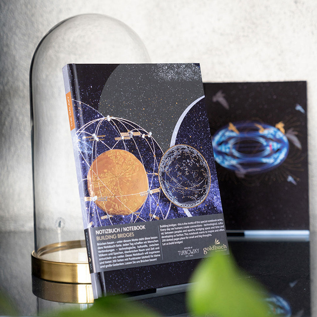 BUILDING BRIDGES or in German: building bridges ═ this is the motto of this special series of notebooks. Every day we humans create connections ═ technological, cultural, between peoples and epochs, bridge space and time and develop further. Each design tells its own fascinating story and a small flyer is included that invites you to collect the 8 motifs.