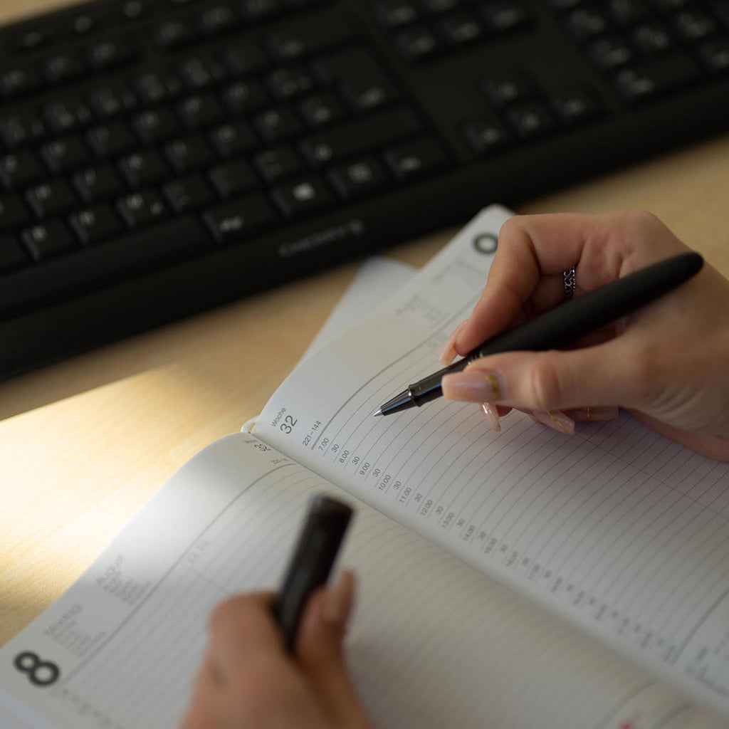 The Imperium rollerball pen is ideal as a gift for good friends for whom writing is more of a pleasure than a job, or as a present for business partners and customers. It adds style to your desk and its natural and timeless ebony look is a testament to sophistication and taste. Once you own it, you will never want to put it down again!