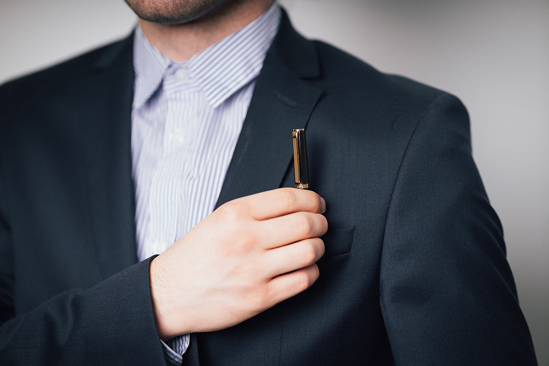 The Vectrum fountain pen made of fine brass and with a gold-alloy clip impresses on every desk with its timeless, classic elegance. With its gentle retro design and high-quality workmanship, it is a loyal companion in everyday managerial life. The brass shaft and the metal thread ensure a long service life for this elegant writing instrument from Hörner.