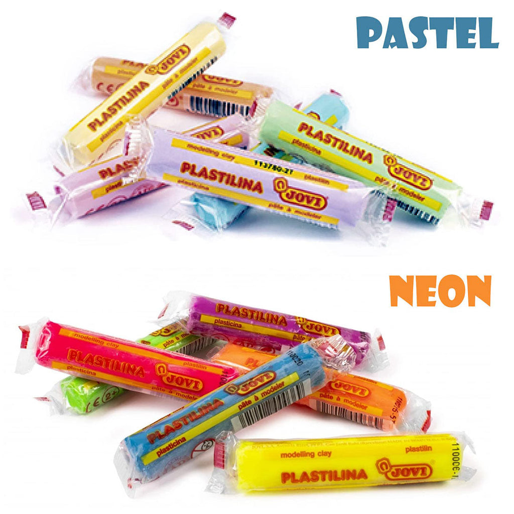 PLASTILINA JOVI is a 100% vegetable modelling paste for playing in fun colours, very malleable, suitable for ages 2 years and older, gluten free and never dries out. Jovi vegetable PLASTILINE, unlike minerals, allows you to make figures with greater volume (+34.5%) You can play without stopping because it never dries out Easy to mould and release Ideal for making volumised figures, its versatility also supports the use of moulds and shapers as well as other painting techniques with PLASTILINA on paper. Free of major allergens and gluten free Totally harmless to the child and no risk of toxicity.