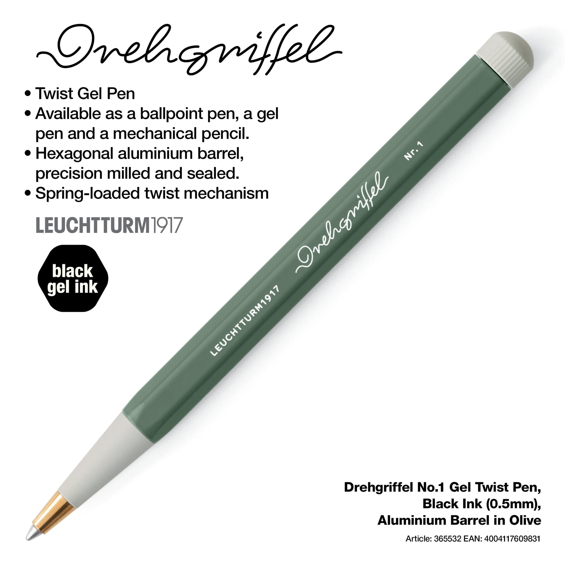 LEUCHTTURM1917 Gel Pen with Document Proof Black Ink | Drehgriffel No. 1 | Olive Green| Twist Mechanism
