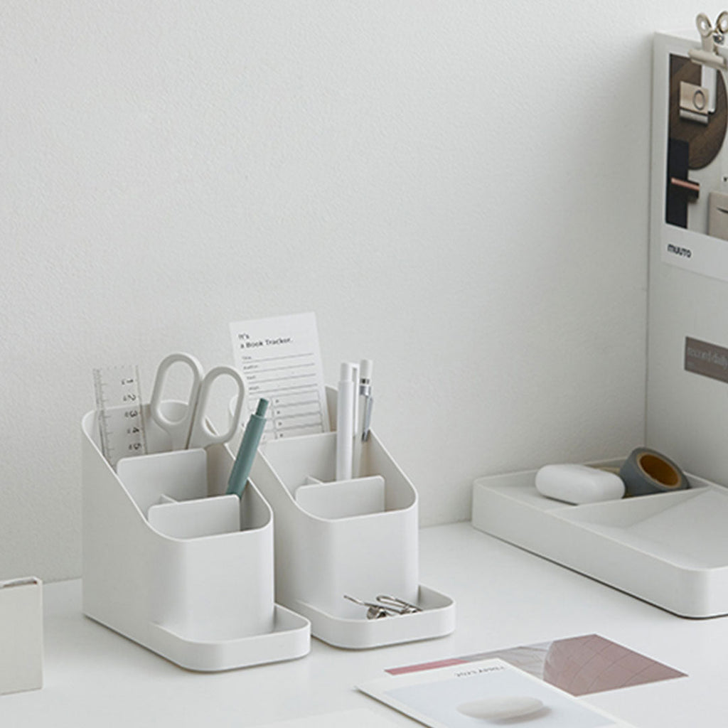 • This is a desk organizer that can store small items of various sizes at once