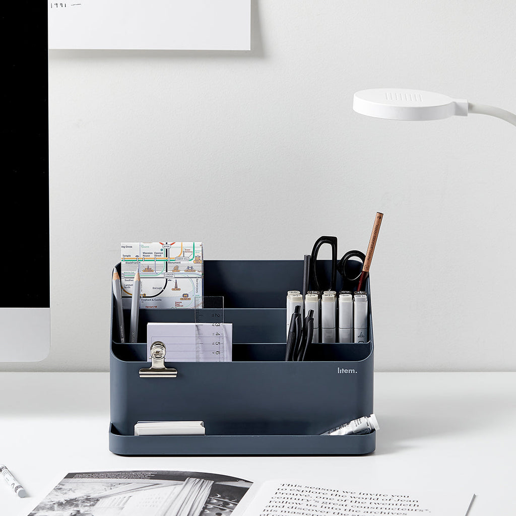 • Litem | Desk Orgnaizer with Adjustable Compartments | White | Desktop Holder
