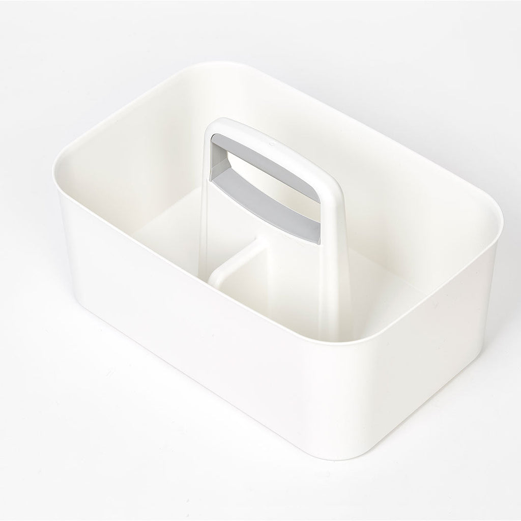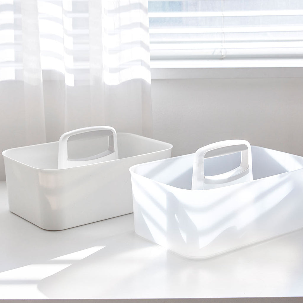 A stackable organizer with a handle so you can transport materials, tools, cleaning supplies, etc.