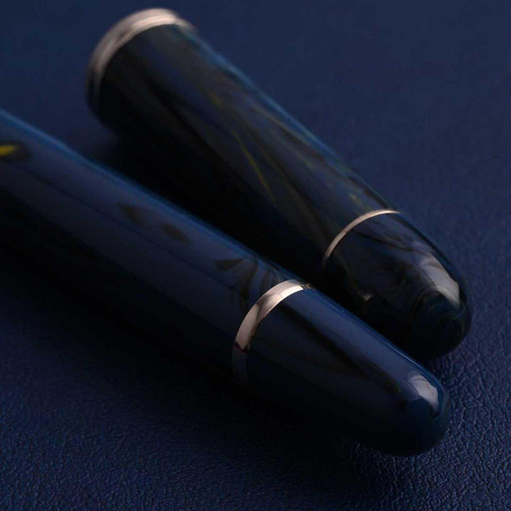 Since 1999, the passionate craftspeople of Penlux focused on private label manufacturing of fine writing instruments. In 2015, the Taiwanese manufacturer forged their destiny with their brand. The Masterpiece Grande collection is the product of their skill, experience, and passion for handcrafted detail. The Grande does not compromise on size or quality. The generous, cigar-shaped barrel is manufactured from high-grade methacrylate in a variety of eye-catching finishes. Embrace the beauty of the night with the Penlux Masterpiece Grande "Starry Night". With spiraling details of black, blue, and yellow, this pen captures the essence of a starlit sky. Starry Night is the newest addition to the Penlux Masterpiece Grande series, well known and loved for their oversized barrels and piston fill system. The combination of a piston fill system with the oversized barrel ensures that the Starry Night by Penlux holds a LOT of ink, more than standard sized pens.