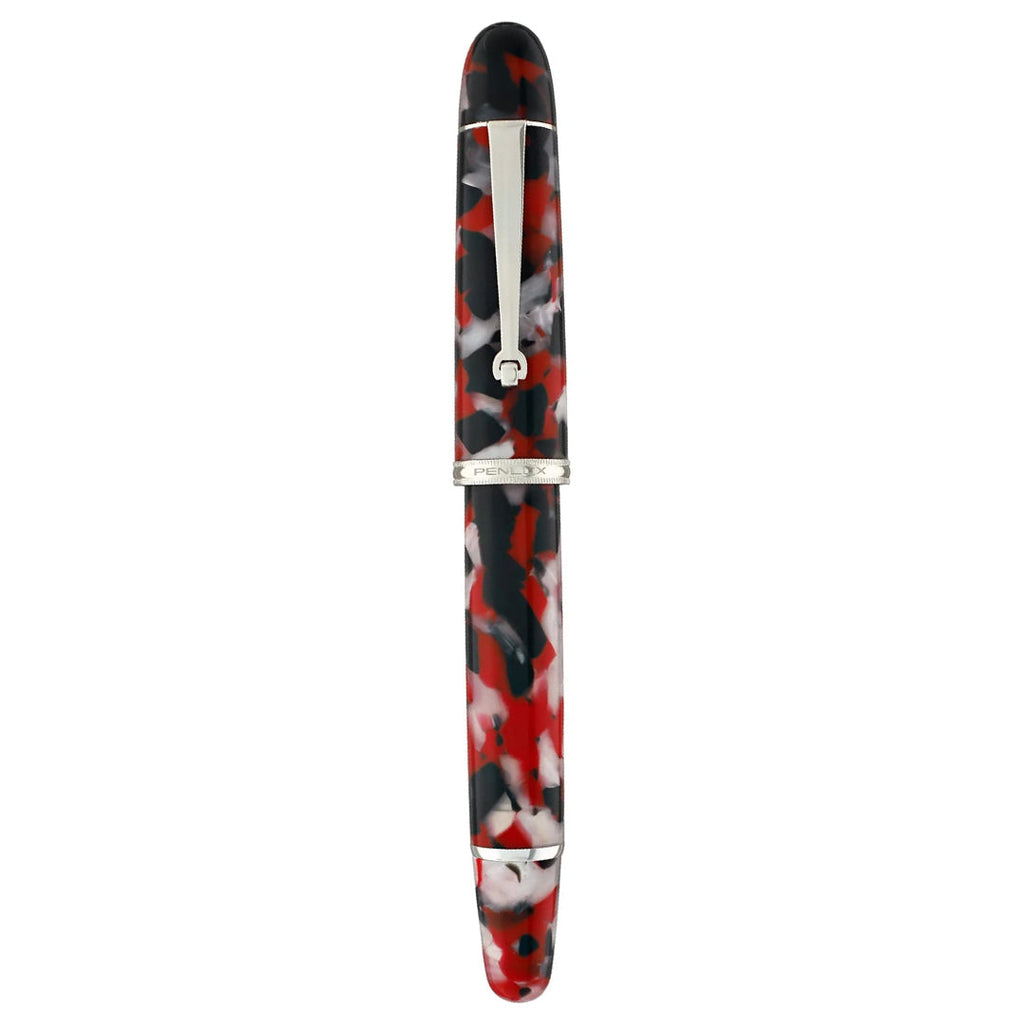 Since 1999, the passionate craftspeople of Penlux focused on private label manufacturing of fine writing instruments. In 2015, the Taiwanese manufacturer forged their destiny with their brand. The Masterpiece Grande collection is the product of their skill, experience, and passion for handcrafted detail. The Grande does not compromise on size or quality. The generous, cigar-shaped barrel is manufactured from high-grade methacrylate in a variety of eye-catching finishes. If you’ve been to a water garden or koi pond, then I’d bet you’ve been entranced by the peaceful patterns painted onto these jeweled fish. The way light glitters on their bright scales would make anyone pause for a moment of reflection. Koi fish have their fair share of mythology and symbolism surrounding them which has brought us to associate them with longevity, strength, success, prosperity, harmony, and happiness. The Penlux Masterpiece Grande Koi Red and Black was inspired by these peaceful beings, with a translucent, varied design that is reminiscent of scales going through the entire body, cap, and section. Let the Koi Red and Black bring you tranquility to pursue your own success, harmony, and happiness. Around the lip of the screw-on cap, a thin, ridged metal band bears the Penlux logo. A tapered, tension-fixed wheel clip allows secure attachment to a pocket or pen loop. Fill up the Masterpiece Grande with a large volume of ink using the built-in piston-filling mechanism (bottled ink only). The stainless steel #6 nib (made by Jowo, Germany) provides a reliable, quality writing experience from day one.