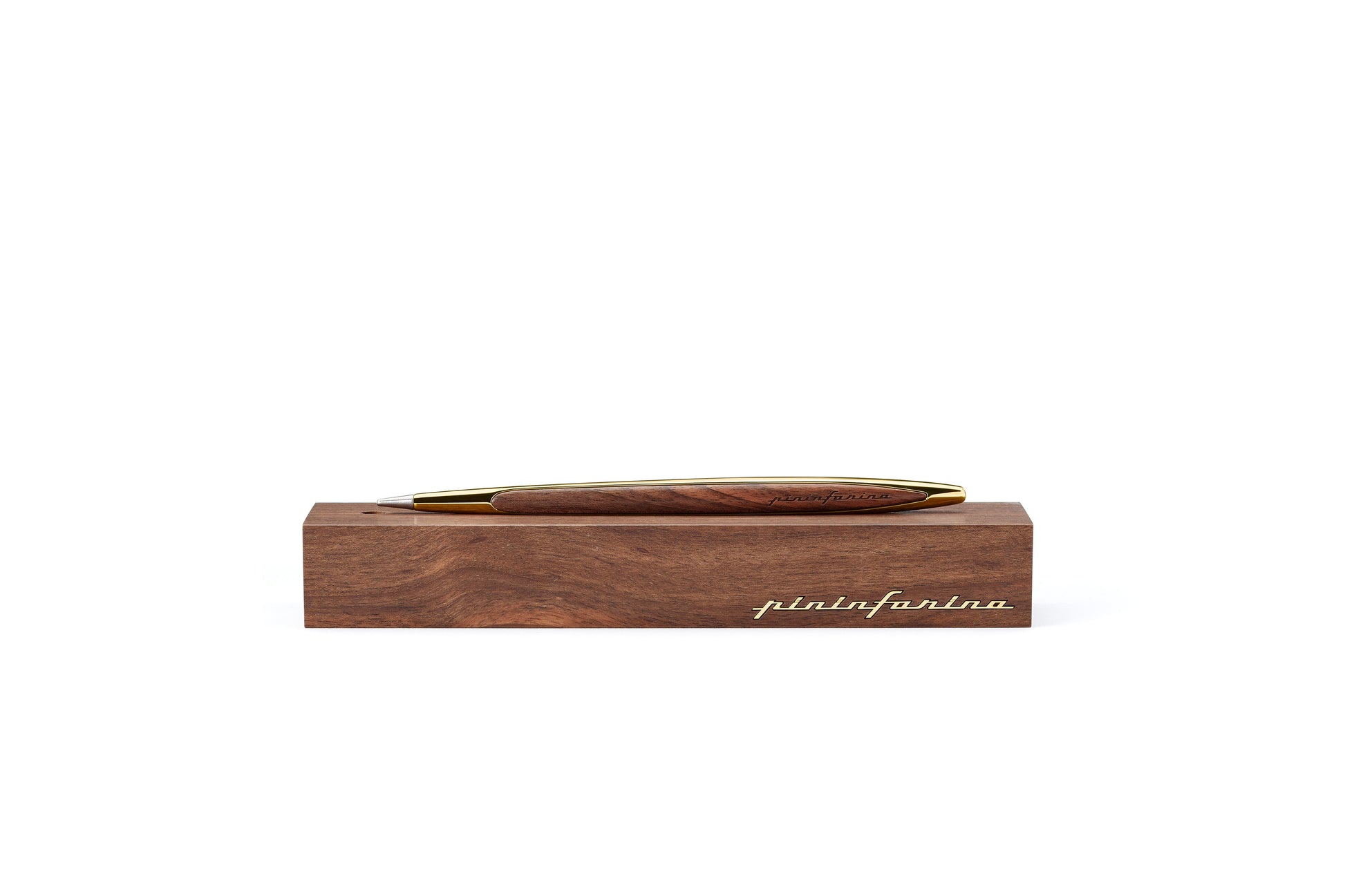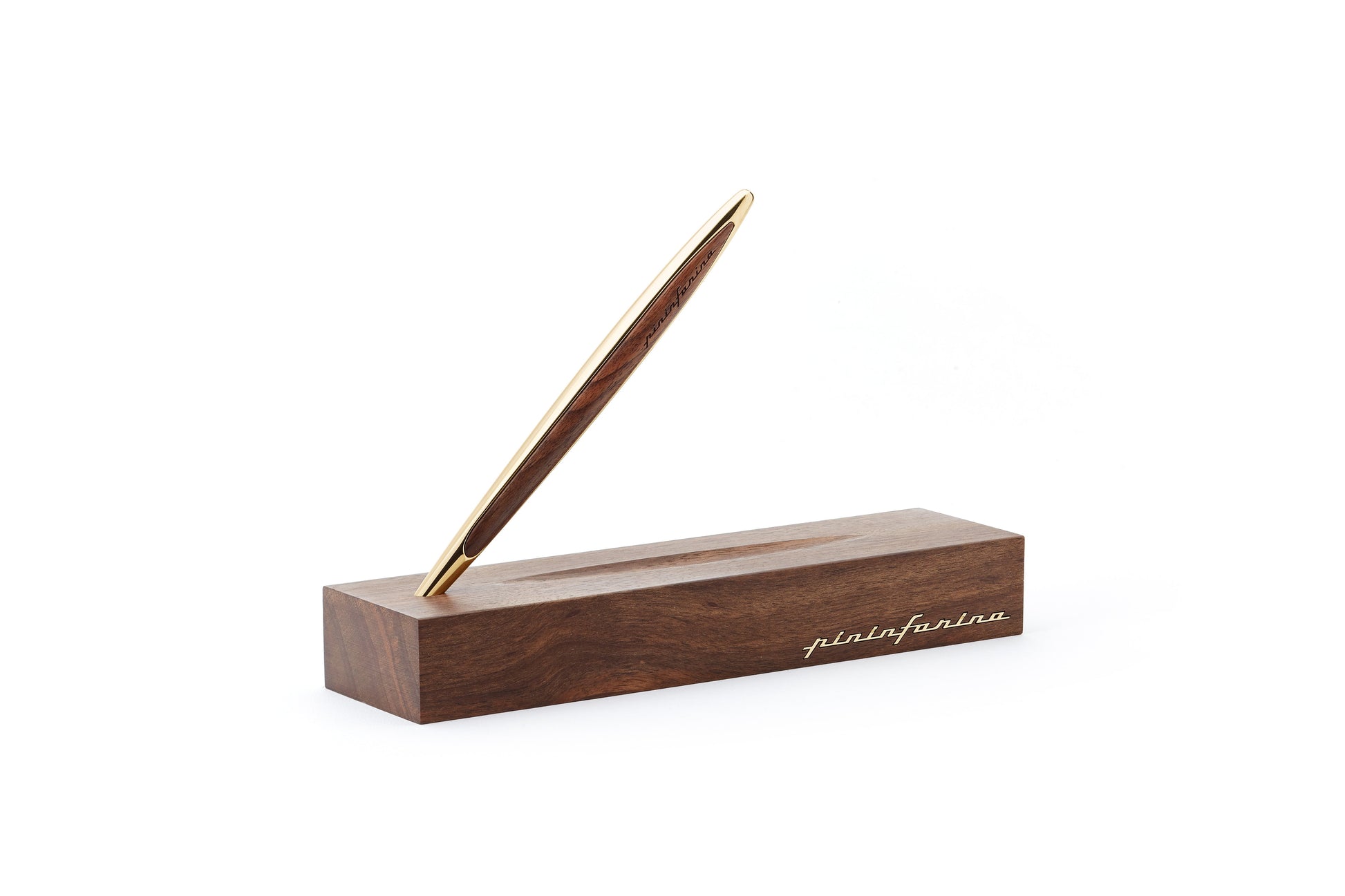 Pininfarina | Cambiano | Pale Gold | Classic Ethergraf metal alloy tip | Solid Wood Desk Stand