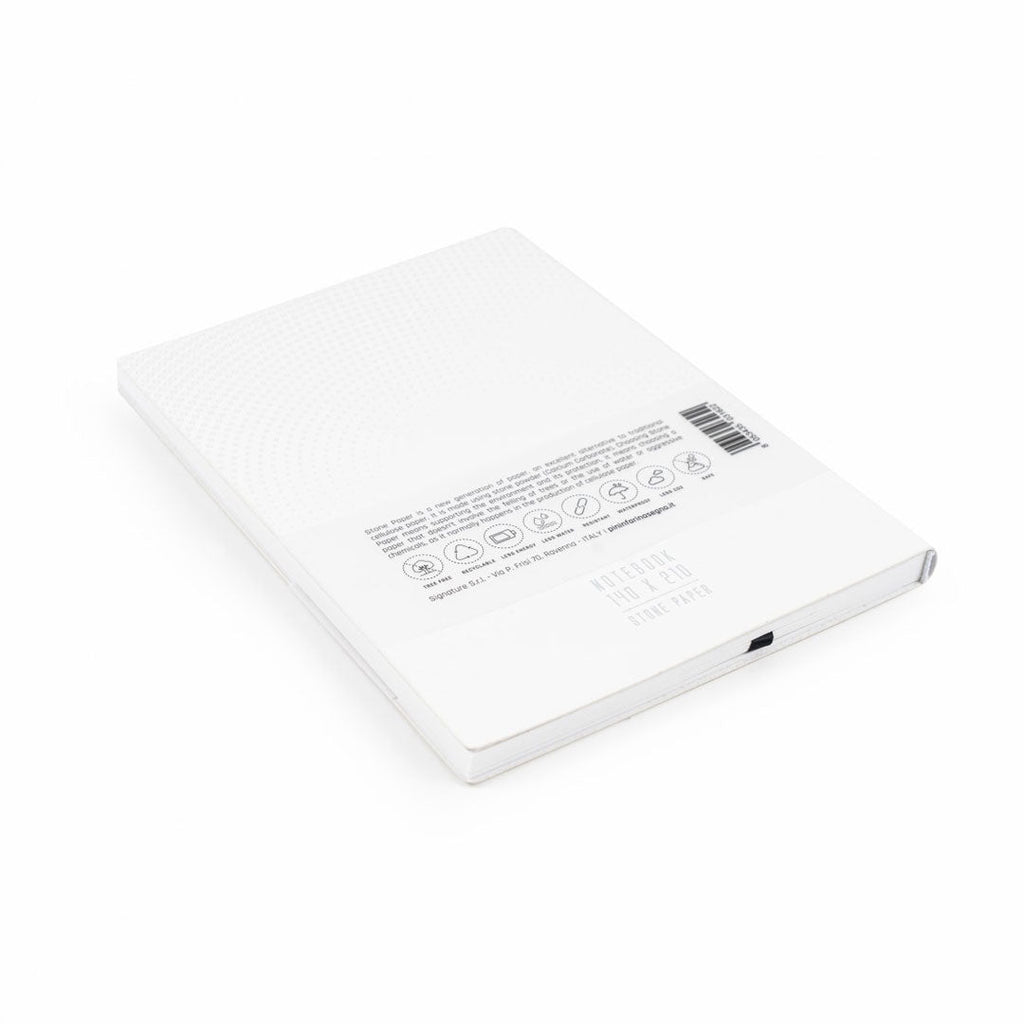The Pininfarina Notes 14x21 Soft Cover White 2025 is made from Stone Paper, the innovative eco-friendly paper that requires no tree-cutting, no water, and no harsh chemicals. Featuring a soft touch white cover with elastic closure and a sleek new pattern, this notebook is the perfect sustainable companion to your Pininfarina Segno writing instruments.