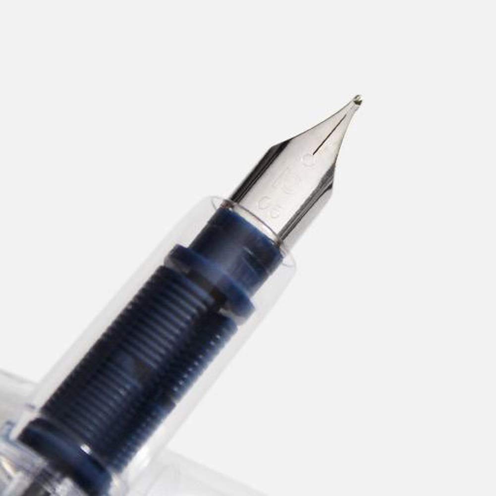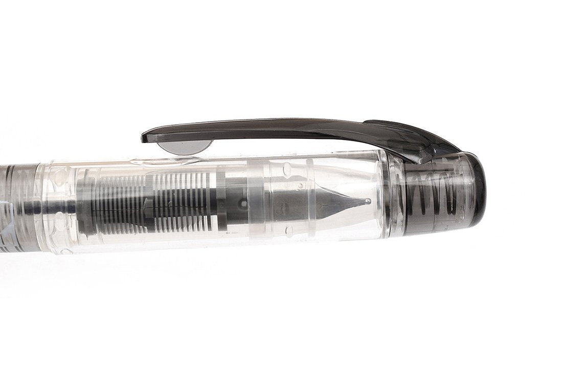 - This pen features a translucent body, a clear cap and a stainless-steel nib.