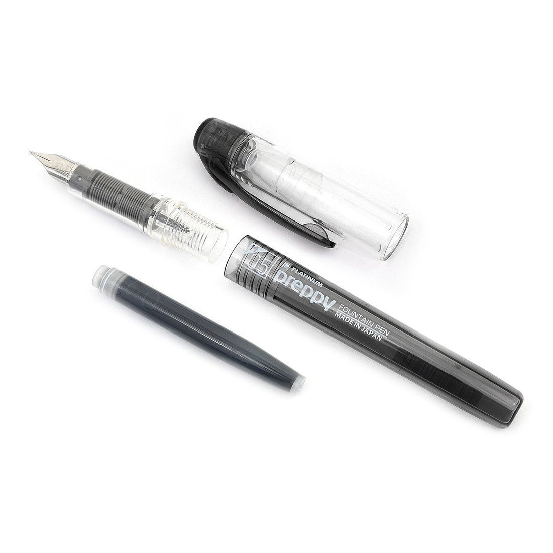 Platinum Preppy Medium 05 Nib Black Fountain Pen With Cartridge - Easy to Use, Stainless Steel Nib, Slip Seal Cap Mechanism, Smooth Writing