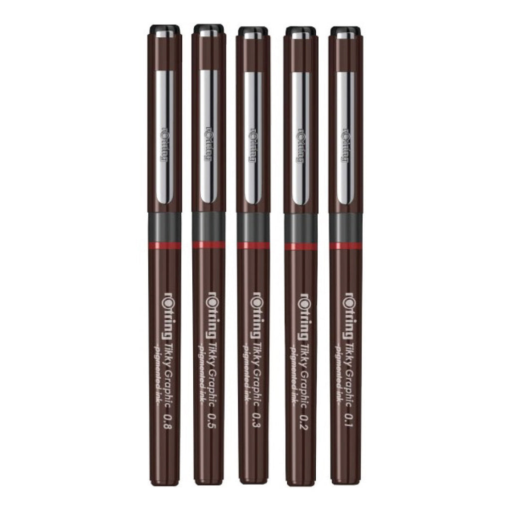 - CONTENTS - 0.1mm, 0.2mm, 0.3mm, 0.5mm, 0.8mm Tikky Graphic - 5 Pen Set