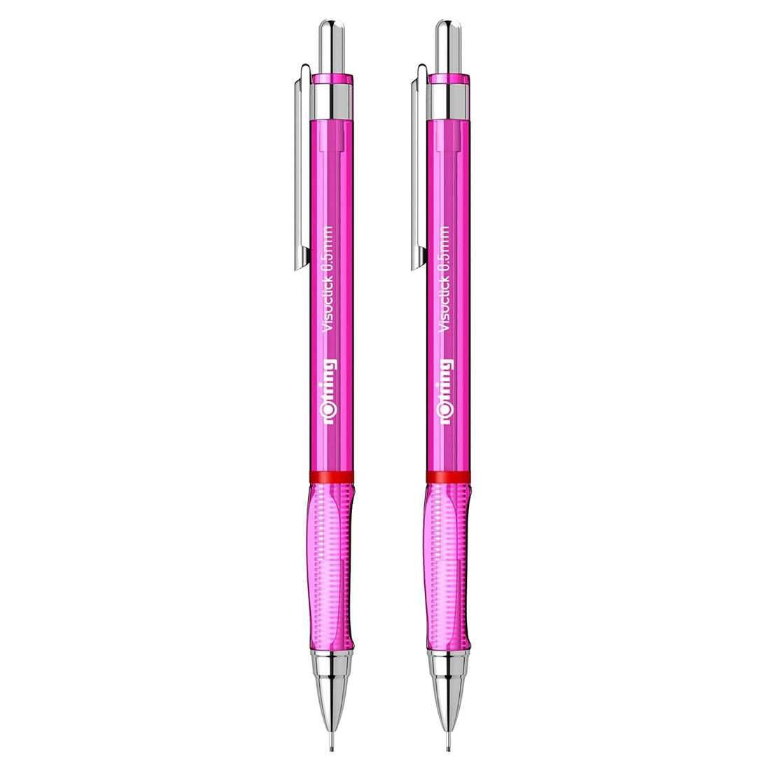 Rotring 0.5mm Mechanical Clutch lead Pen Pencil Set Pack of 2 Pink Transparent ABS Body Light Weight Click Mechanism Visuclick Series Triangular Ergonomic Grip