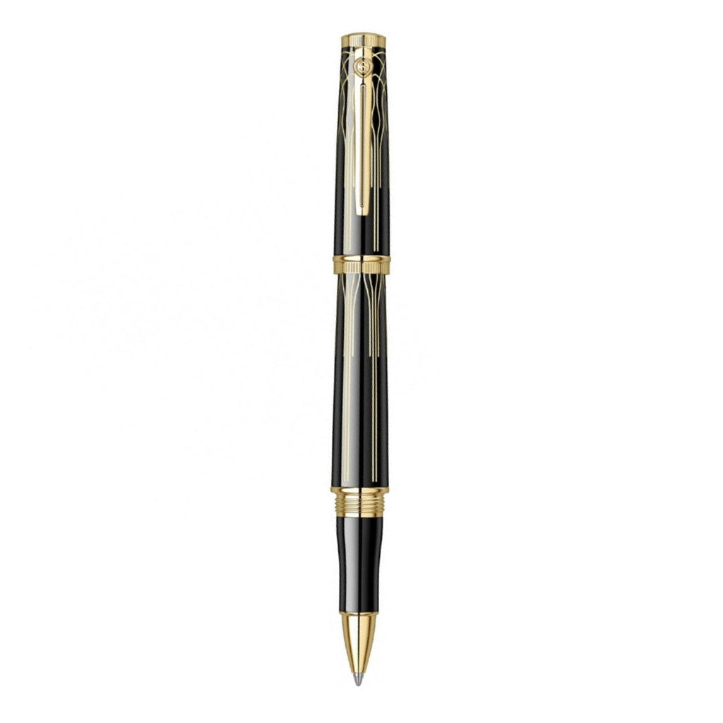 Scrikss Heritage 23k Gold Plated Engraved Design Rollerball Pen | Glossy Black