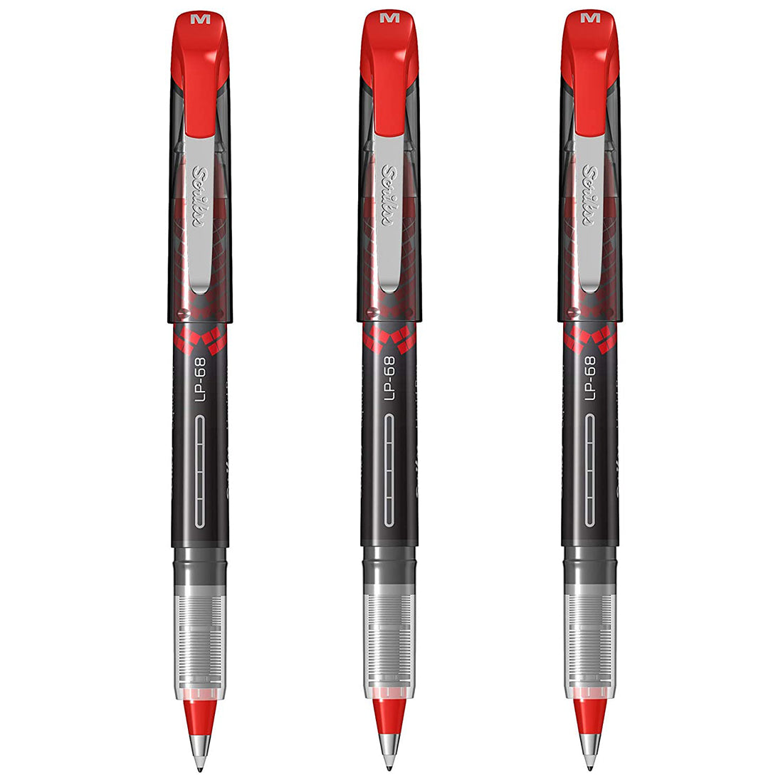 Scrikss Office 0.5 mm Liquid Ink Pen - Chrome Plated Tip & Controlled Ink Flow Adjustment System - LP68 Red Set of 3