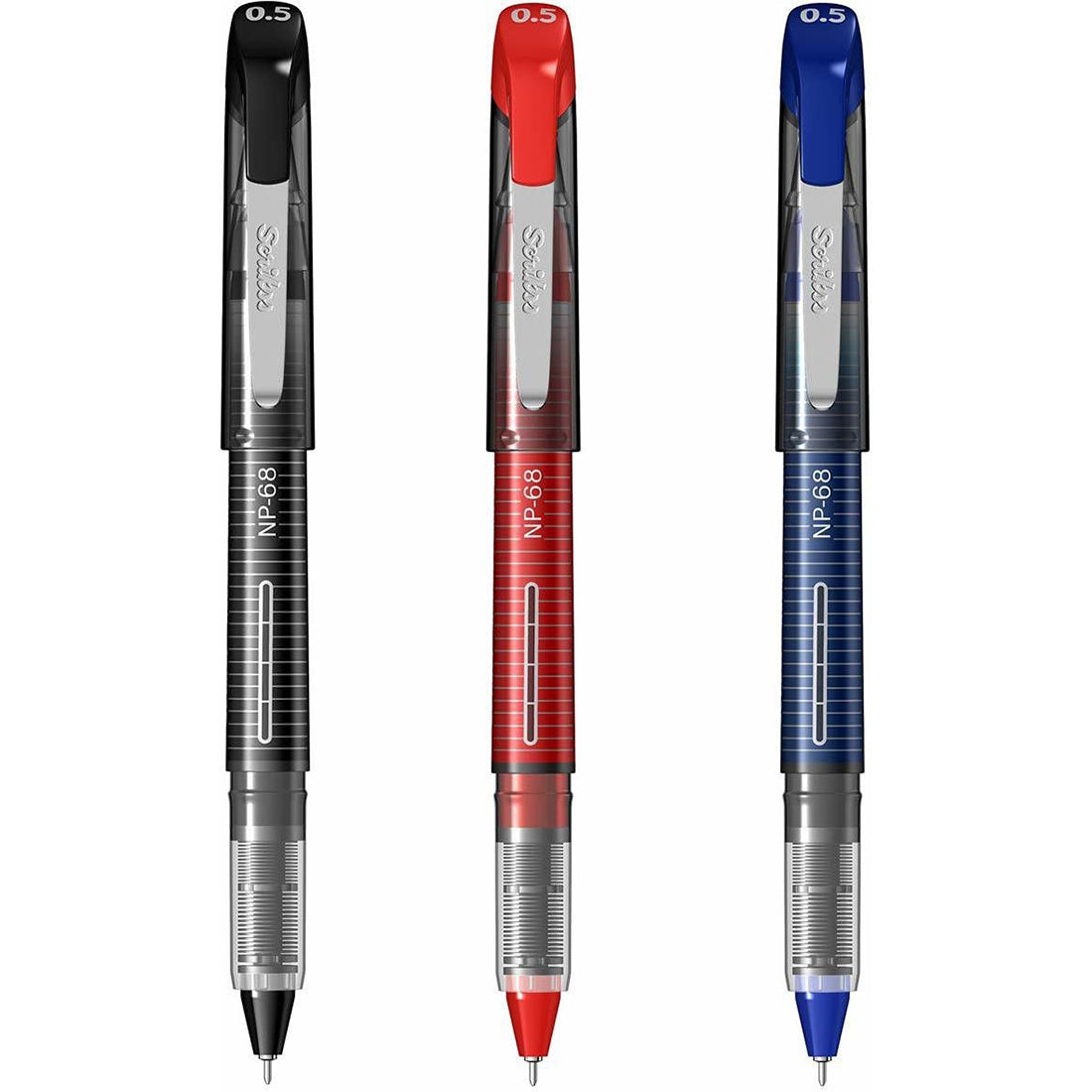 Scrikss Office 0.5 mm Needle Point Pen - Water Based Fast Drying Ink, Strength & Durable Micro Extruded Tip - 3 Pieces NP68 Set (Black, Blue,Red)