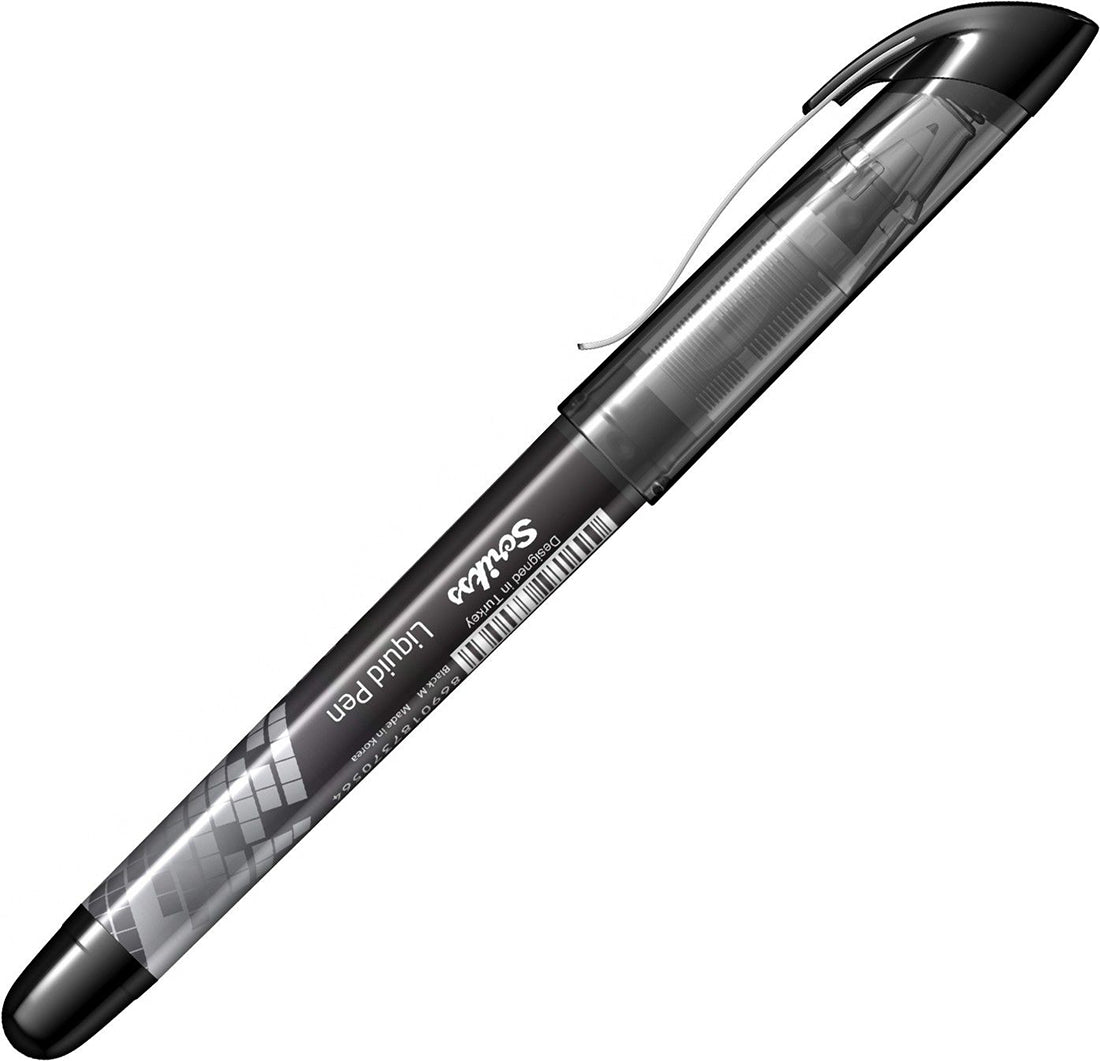 - Liquid Pen 0.5mm, Medium Tip. Pen features Controlled ink flow control system, low viscosity ink, fast drying and increased visibility on paper, perfect ergonomics of the Grip.