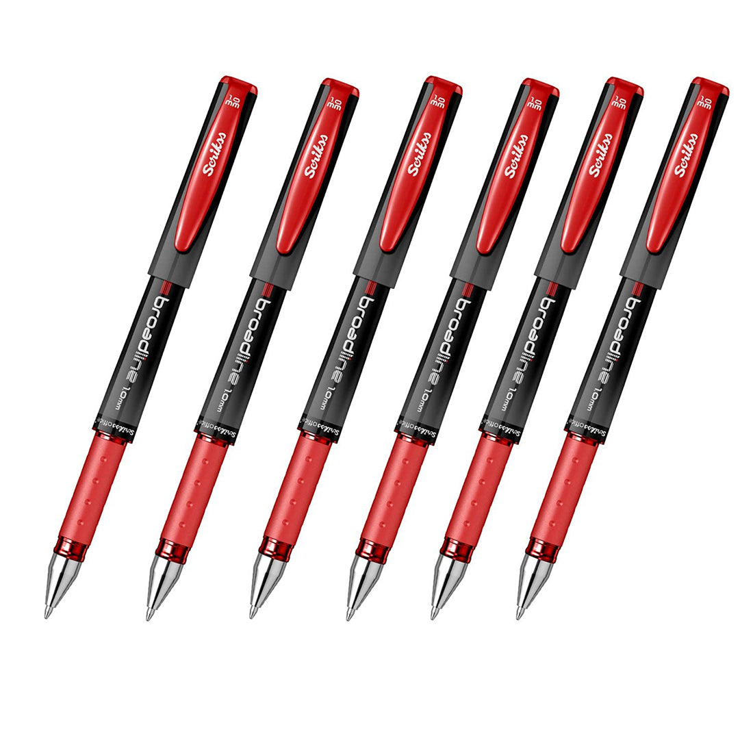Scrikss Office Broadline 1.0mm Gel Pen - Fast Dry Gel Ink, Smooth Writing, ABS Plastic Body - Set of 6 Pens (Red)