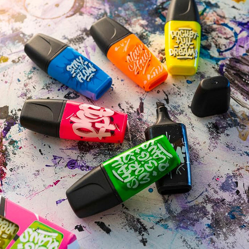 Mini text marker designed by upcoming artist. Cool quotes in graffiti style designed by Artist Snooze One make the highlighter a statement.